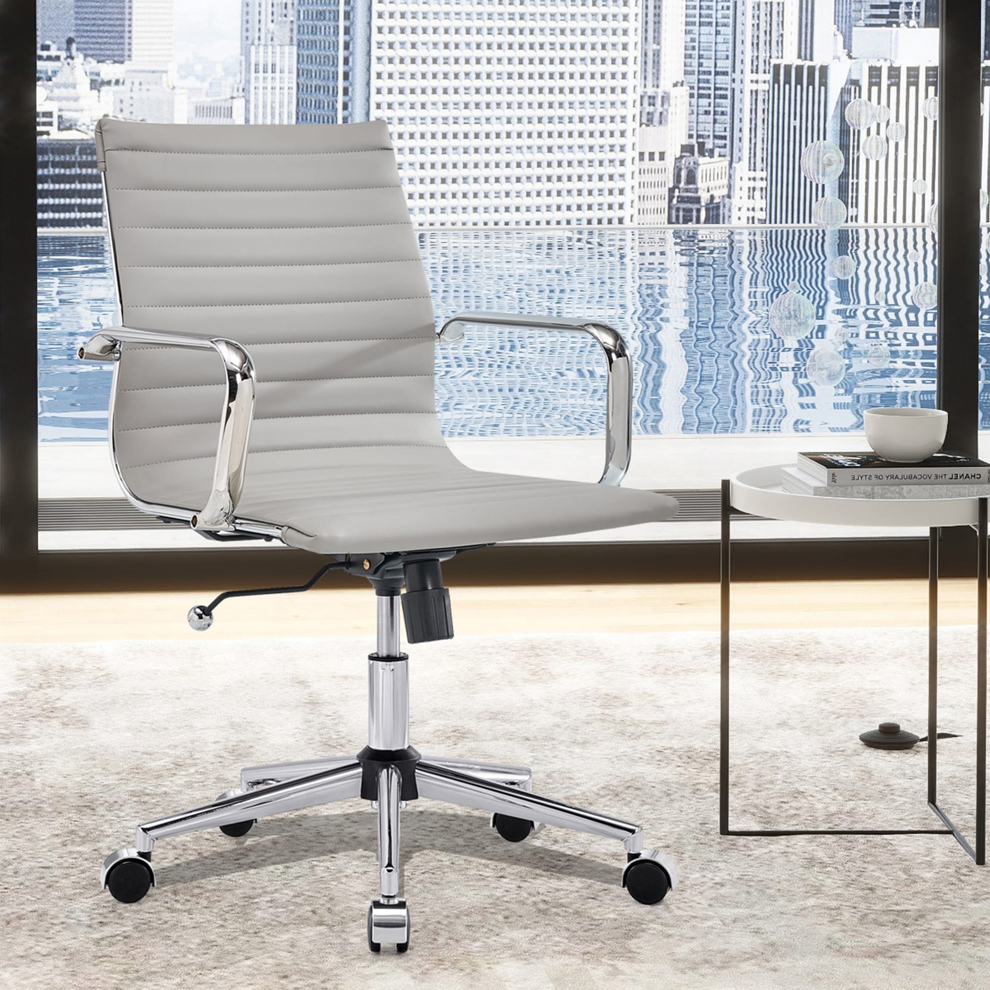 LeisureMod Benmar Mid-Back Swivel Leather Office Chair W/ Chrome Base