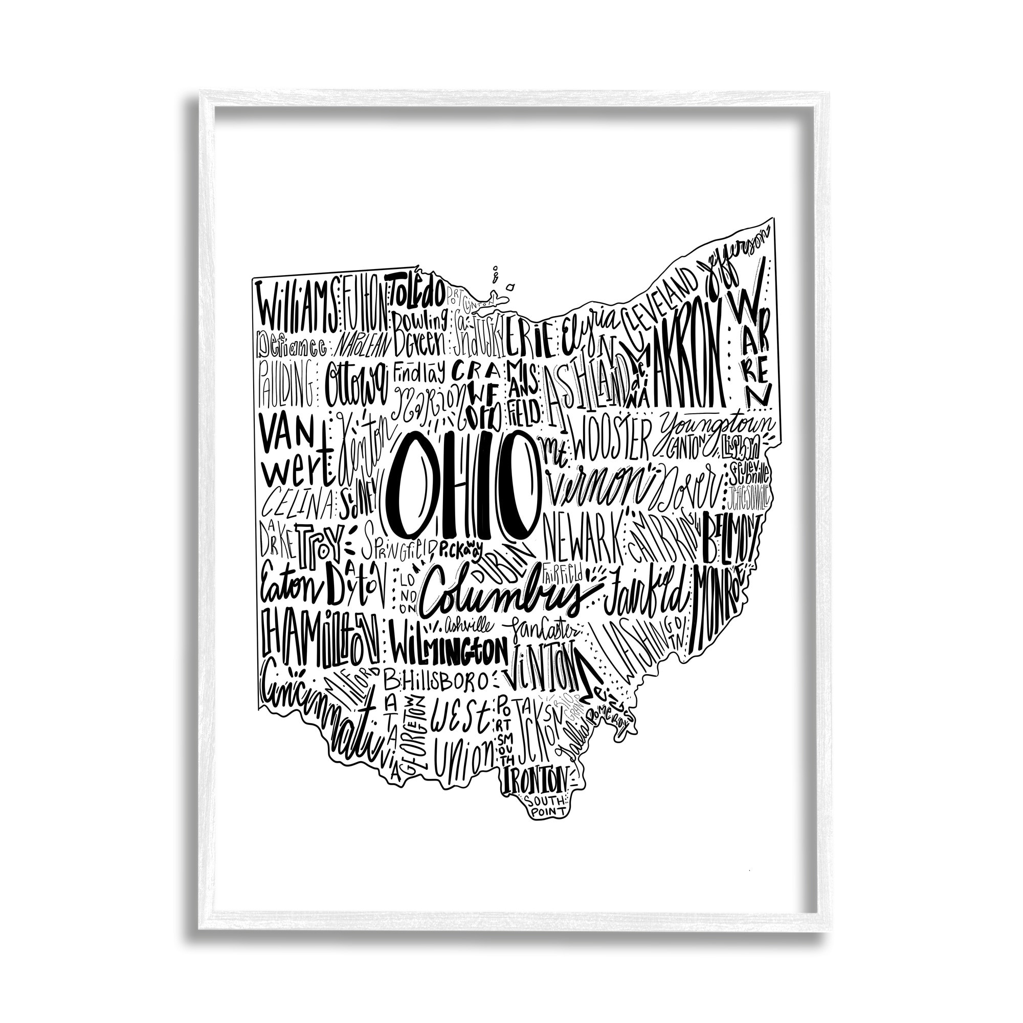Stupell Industries Typography Cities Ohio State Framed Giclee Texturized Wall Art, Design By the Saturday Evening Post