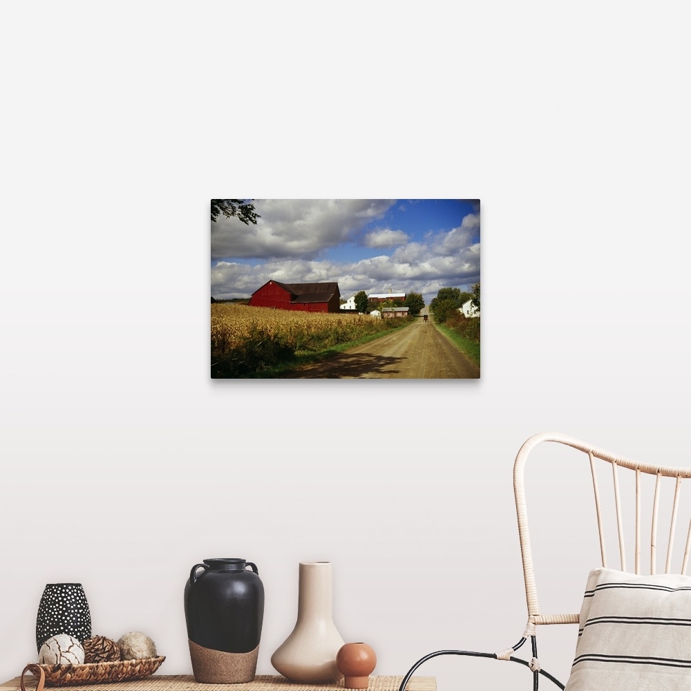 "Amish farm buildings and corn field along country road, Ohio" Canvas Wall Art