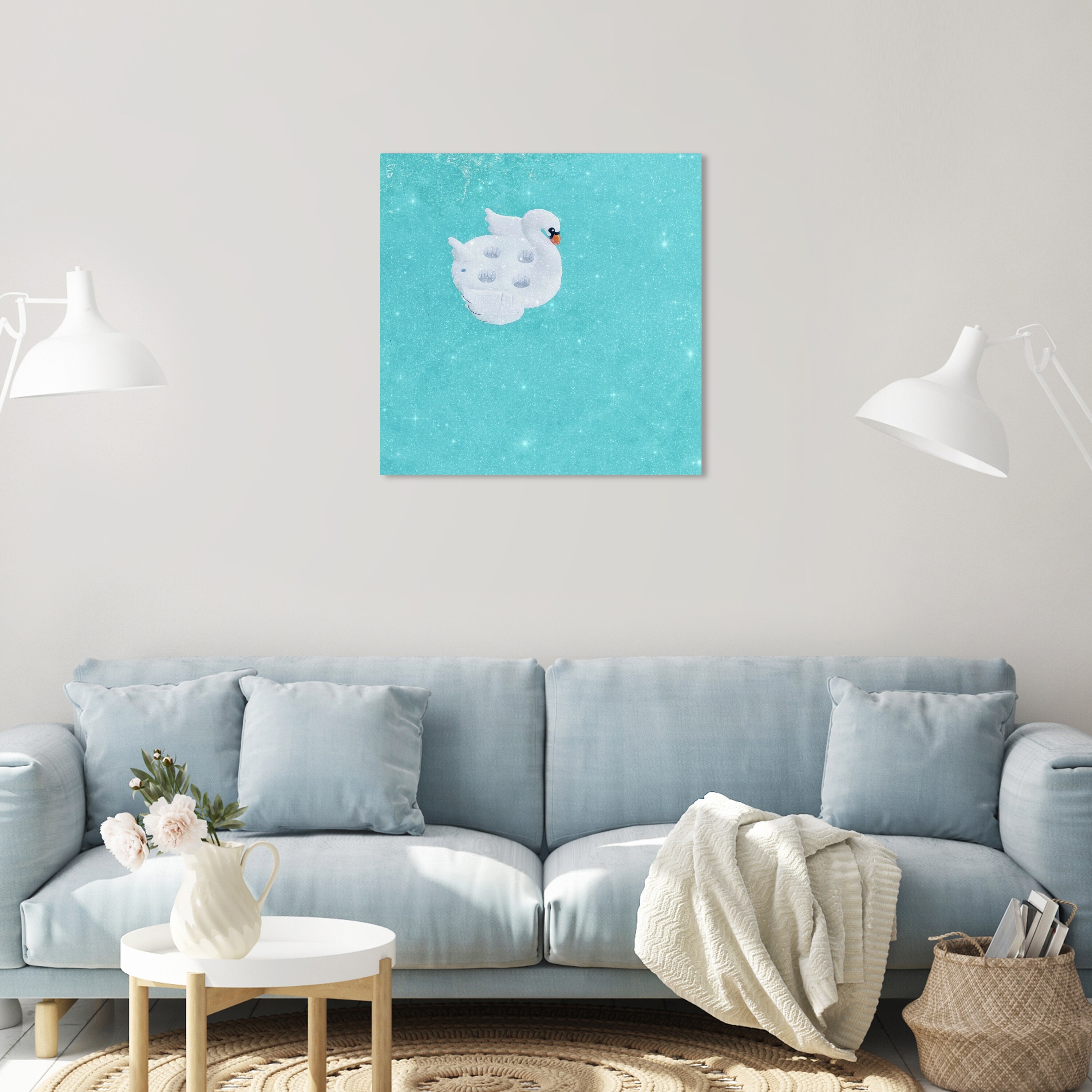 Oliver Gal 'Pool Swan' Holiday and Seasonal Blue Wall Art Canvas Print