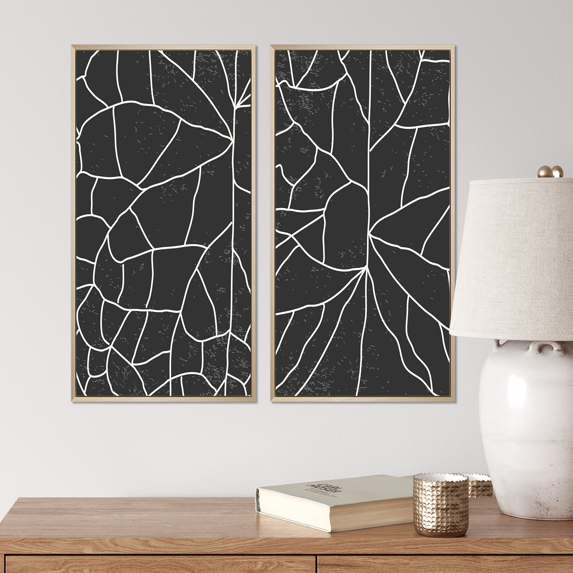 Designart "Monochrome Minimalist Organic Structures II" Geometric Framed Art Set of 2 Pieces