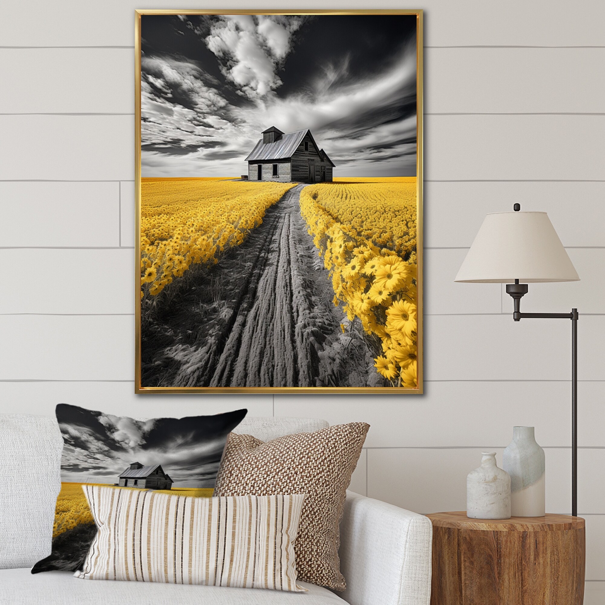 Designart "Barn Country Legacy Pointillism IV" Barns Framed Canvas Prints