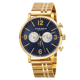 Akribos XXIV Men's Swiss Quartz Multifunction Dual Time Stainless Steel Gold-Tone Bracelet Watch