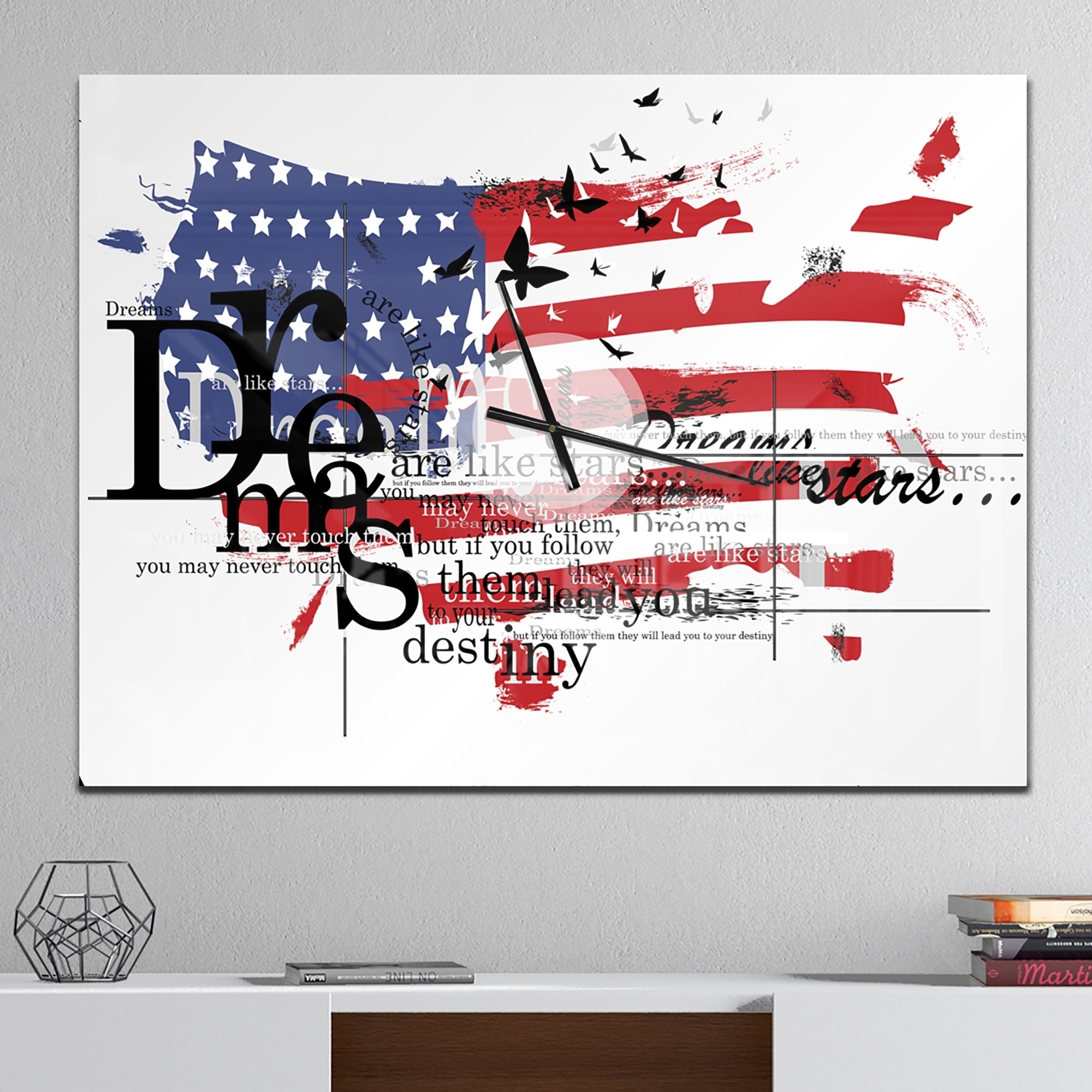 Designart 'Vintage Fashion USA Flag' Oversized Vintage Wall CLock