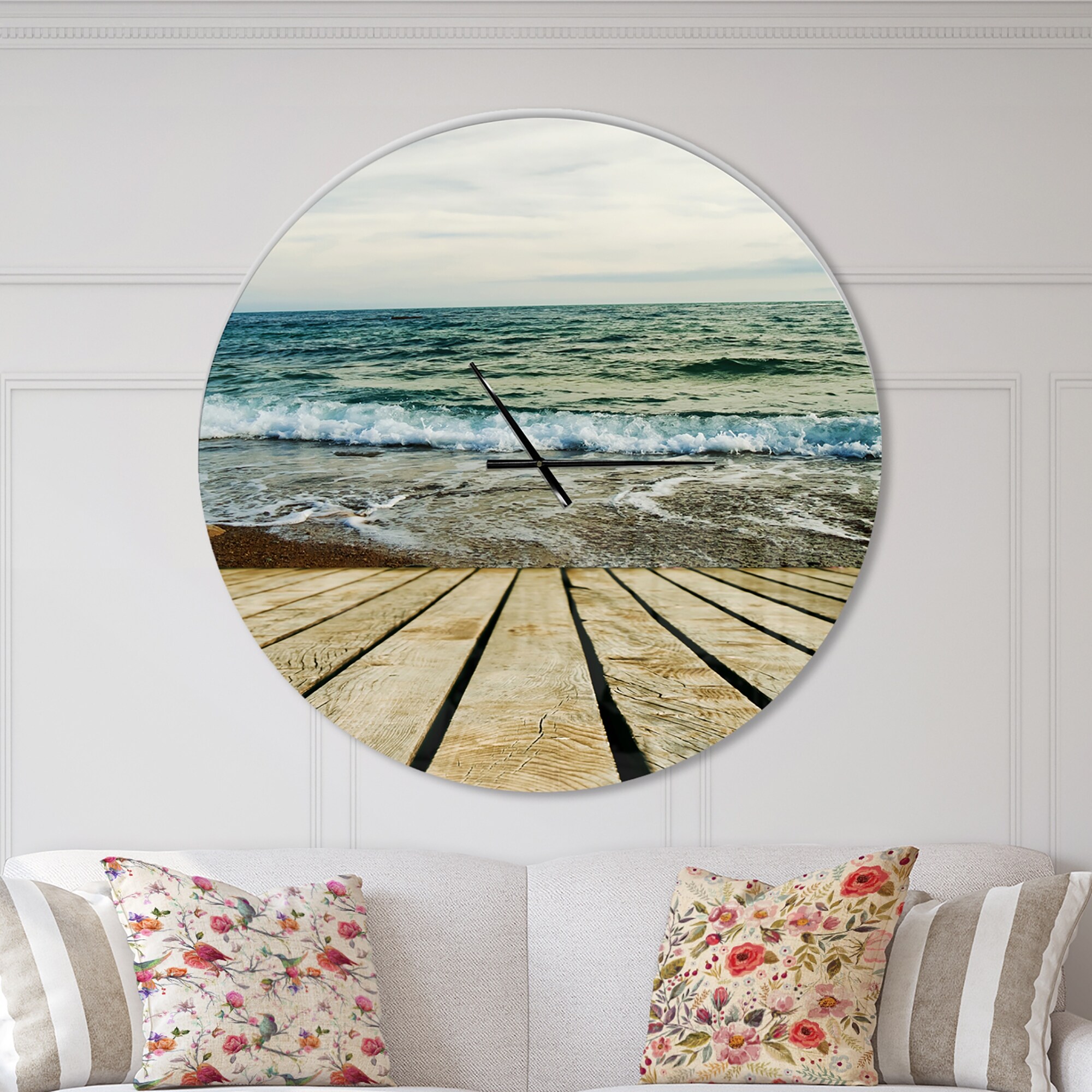 Designart 'Wooden Pier in Waving Sea' Oversized Coastal Wall CLock