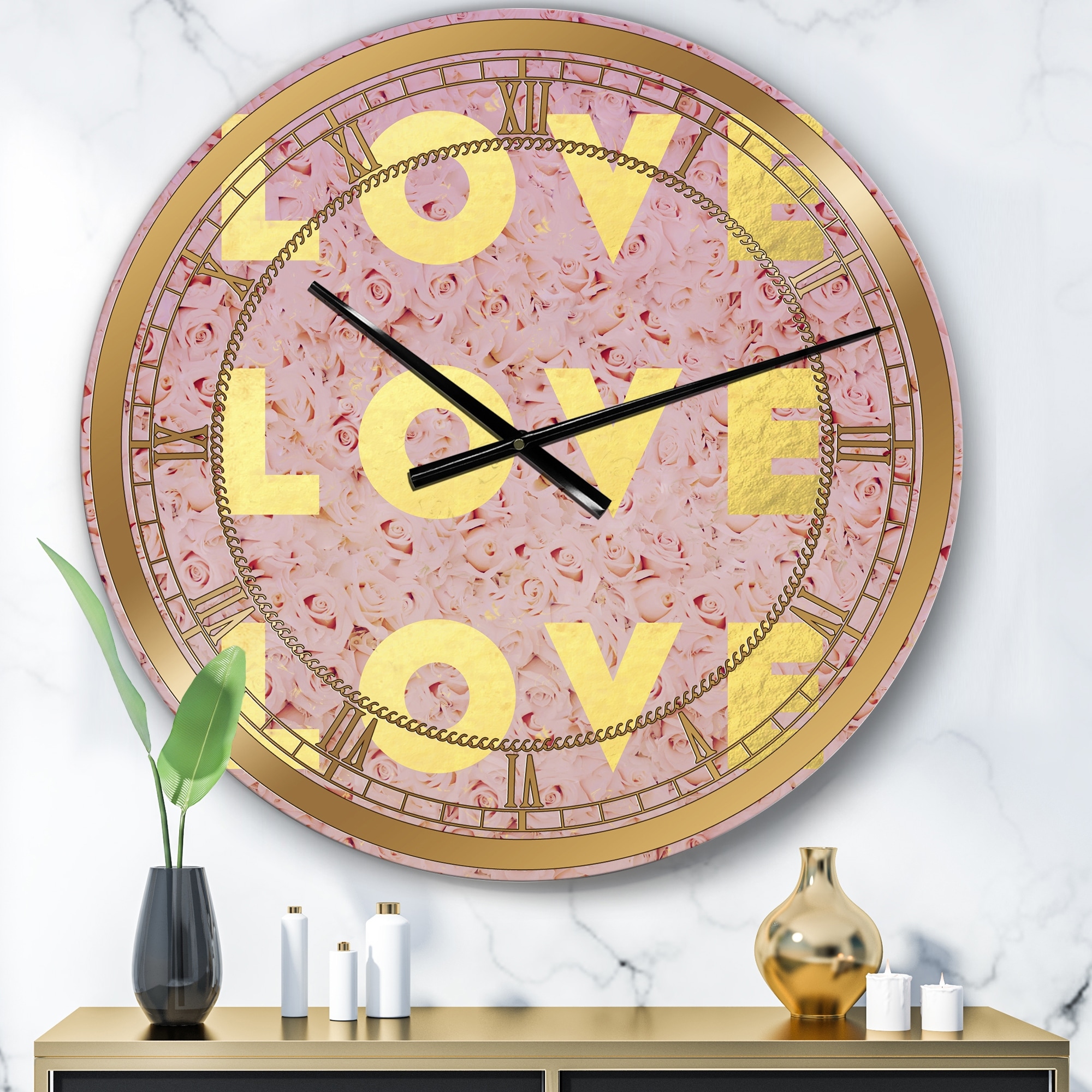 Designart 'Love, Love, Love' Oversized Glam Wall Clock