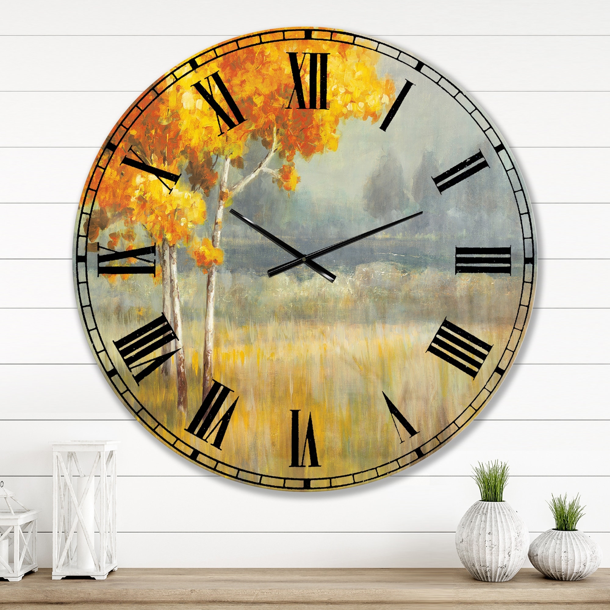Designart 'Autumn Landscape' Farmhouse Oversized Wall CLock