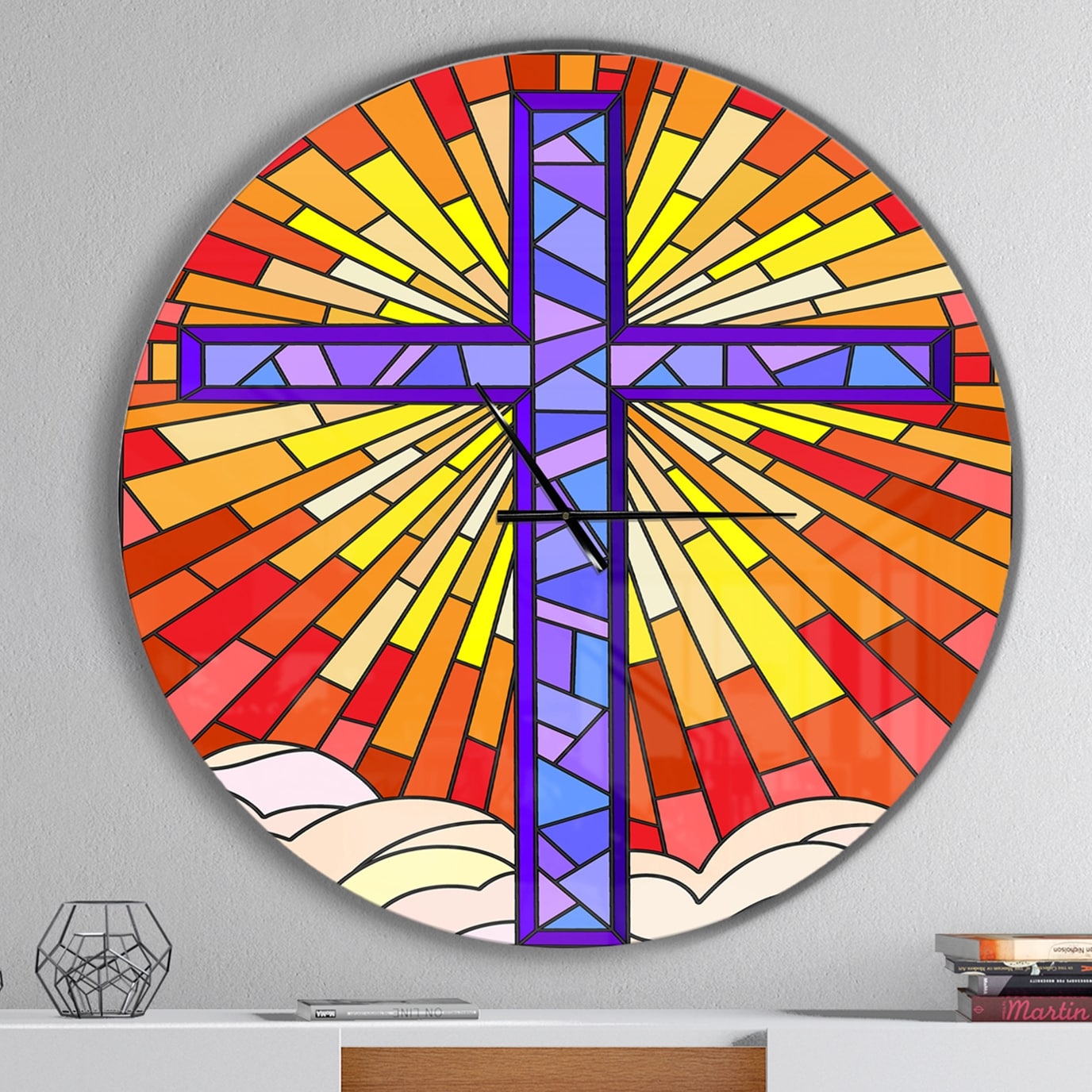 Designart 'Holy Cross Stained Glass Style' Oversized Rustic Wall CLock