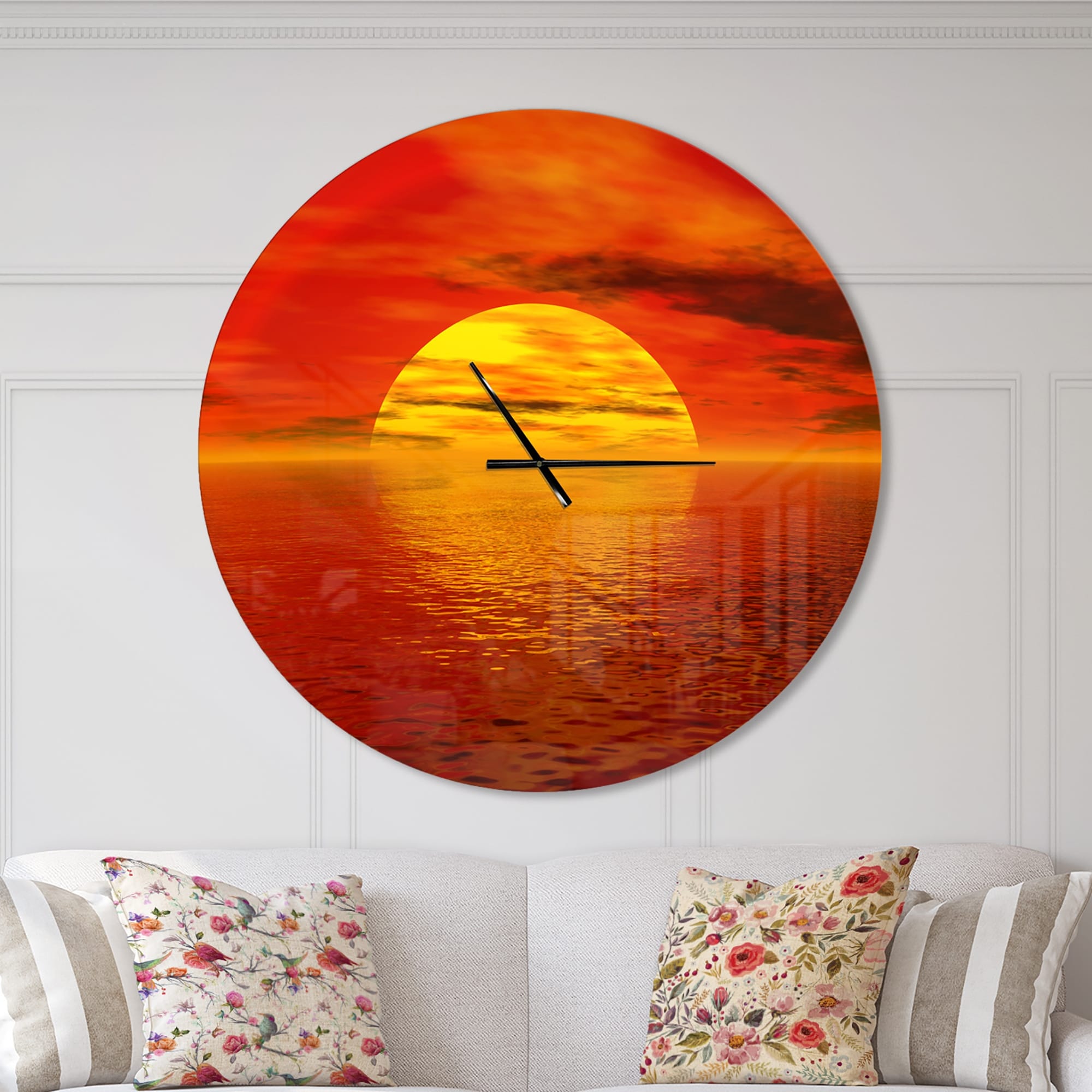 Designart 'Sun Falling to Yellow Ocean' Oversized Coastal Wall CLock