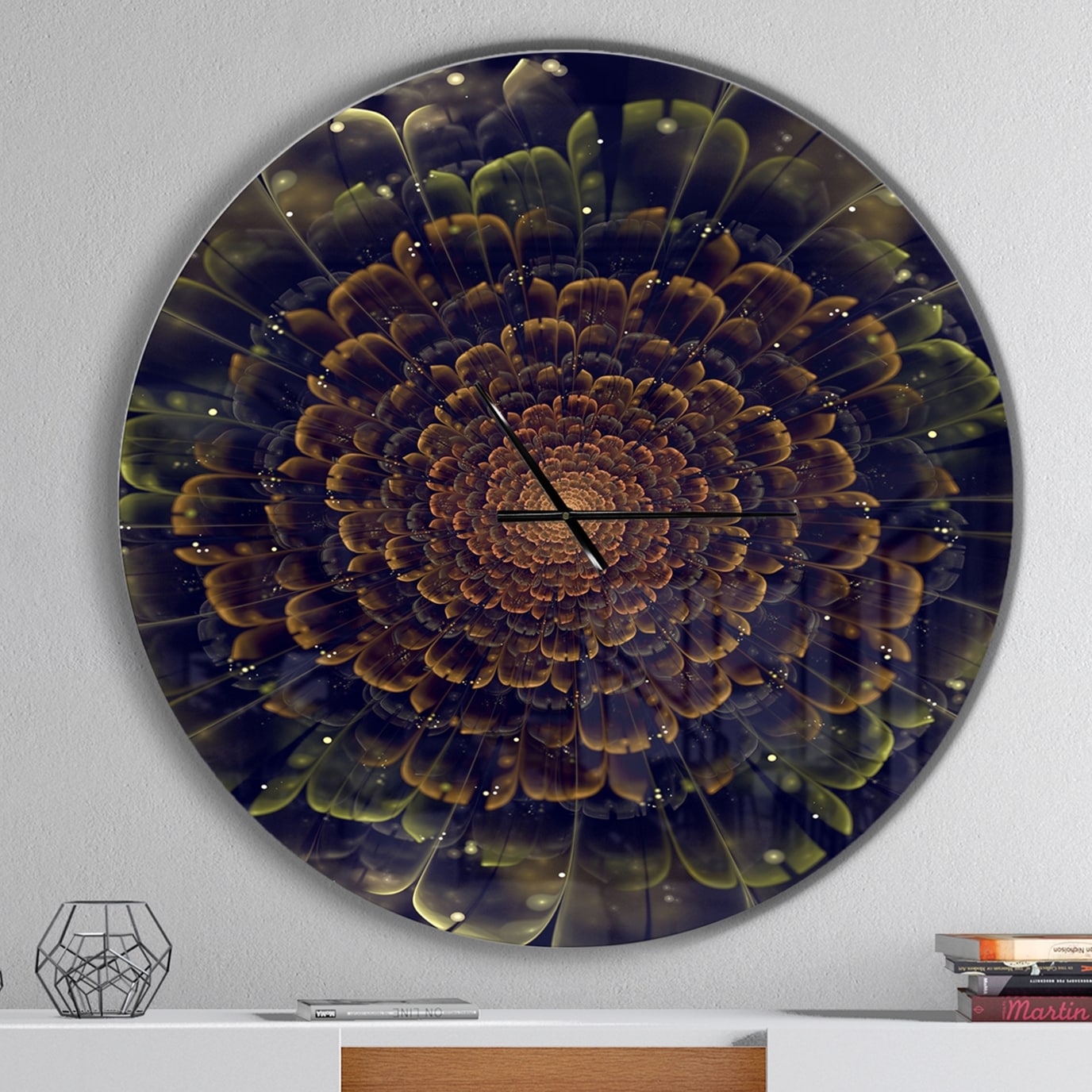 Designart 'Fractal Flower with Golden Rays' Oversized Floral Wall CLock