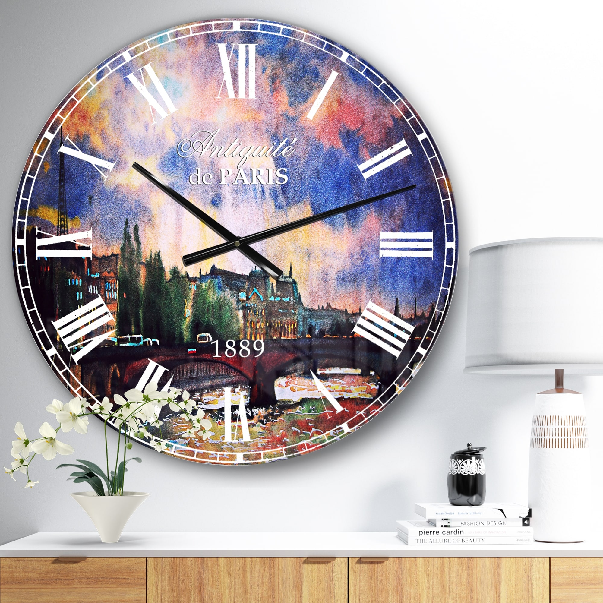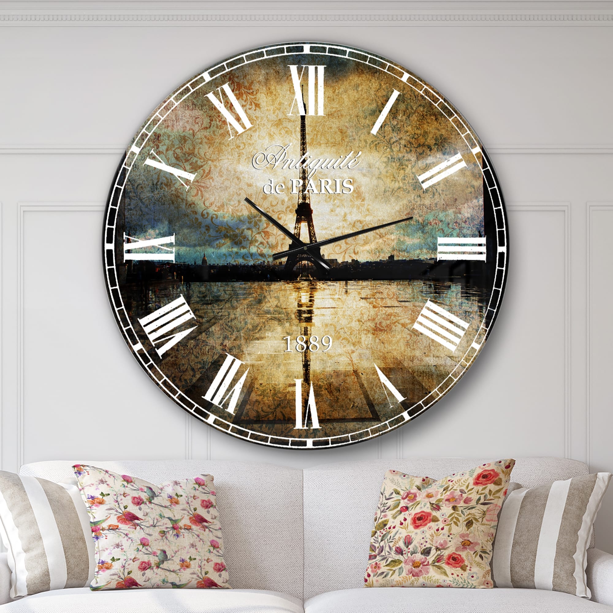 Designart 'Illustration with Paris Eiffel Tower' Vintage Oversized Wall CLock