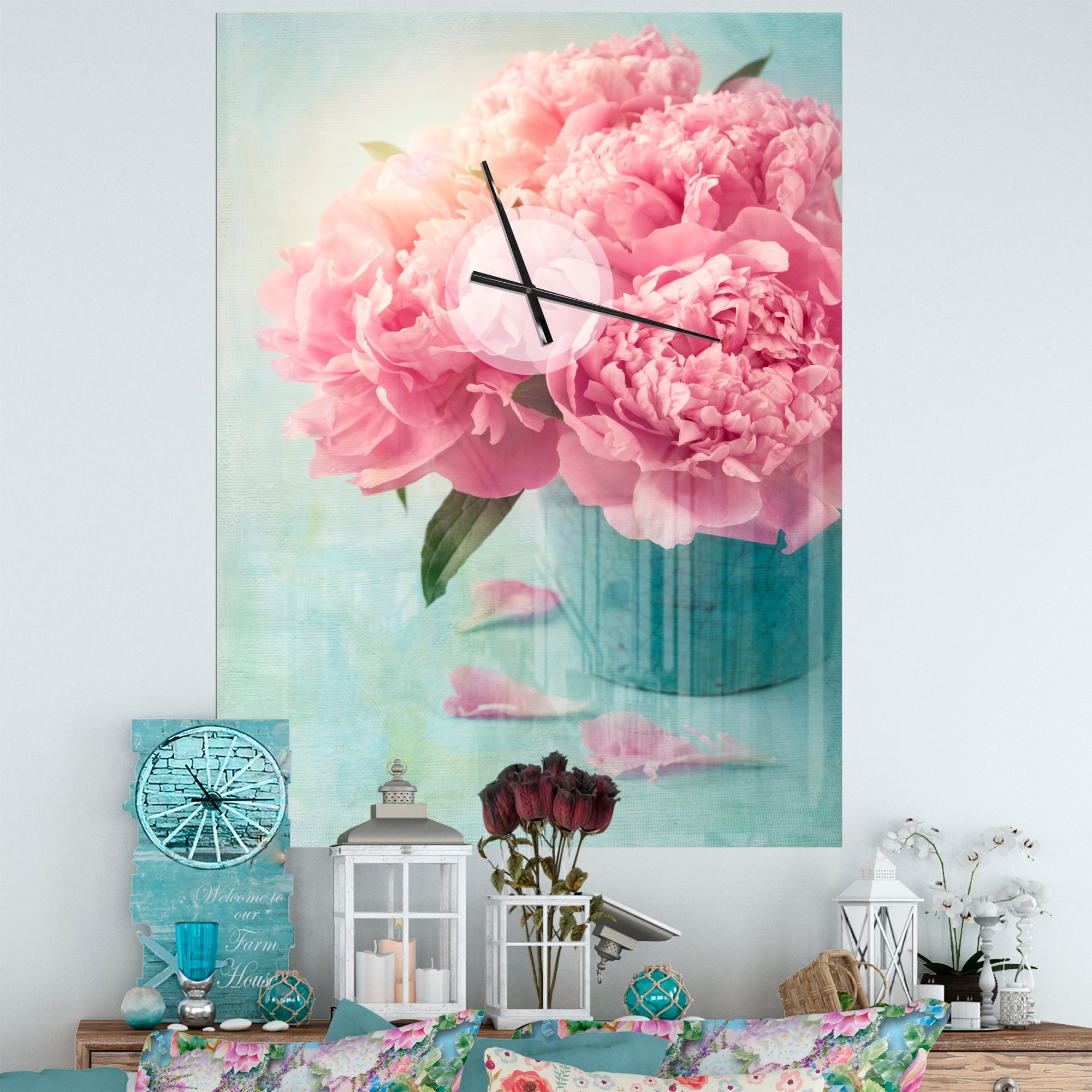 Designart 'Pink Peony Flowers in Vase' Oversized Floral Wall CLock