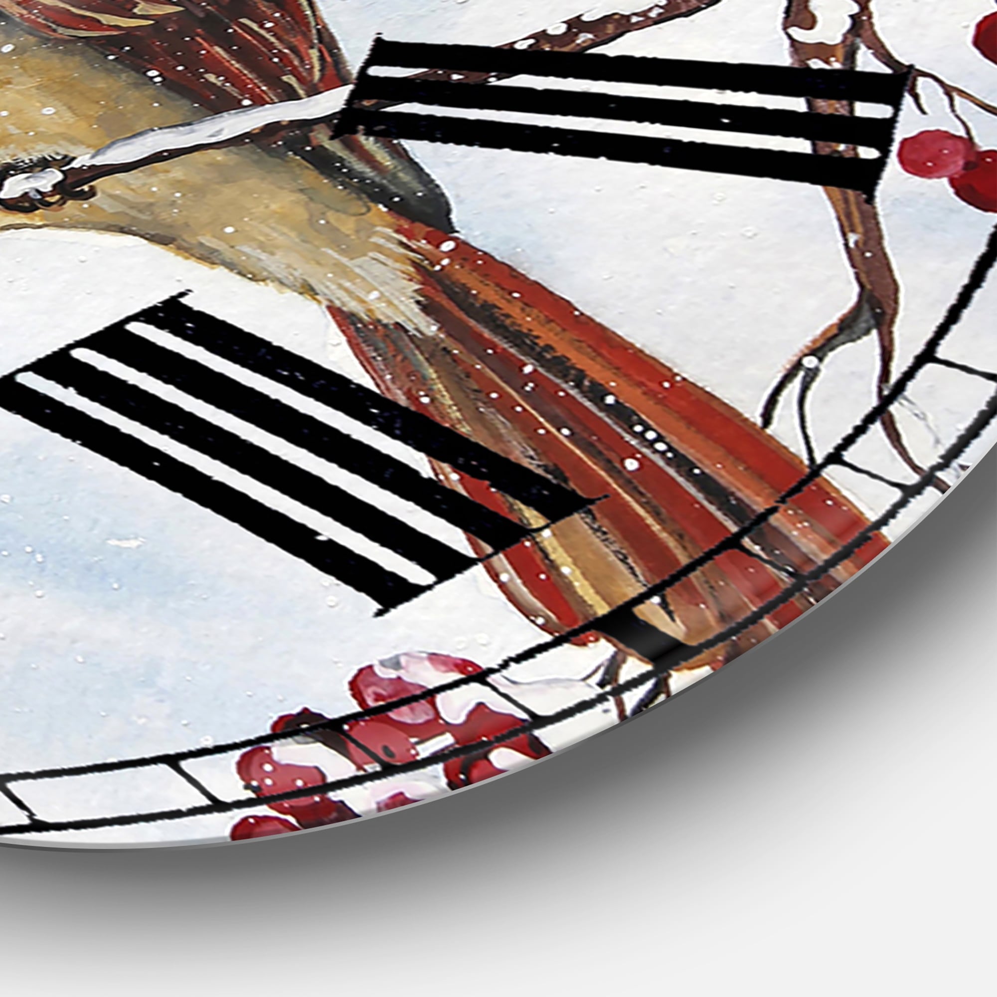 Designart 'Two Cardinals And Snowy Winter Berries' Oversized Cottage Wall Clock