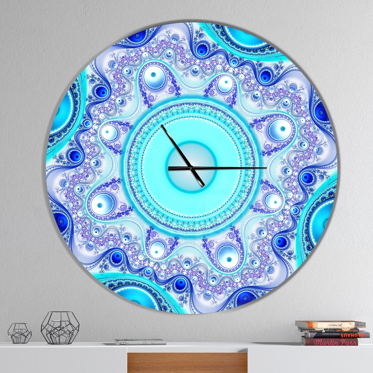 Designart 'Turquoise Wavy Curves and Circles' Oversized Modern Wall CLock