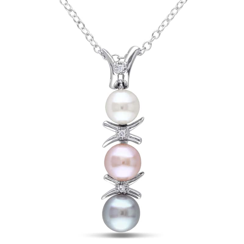 Miadora Sterling Silver Cultured Freshwater Pearl and Diamond Accent Drop Necklace (4.5-6 mm)