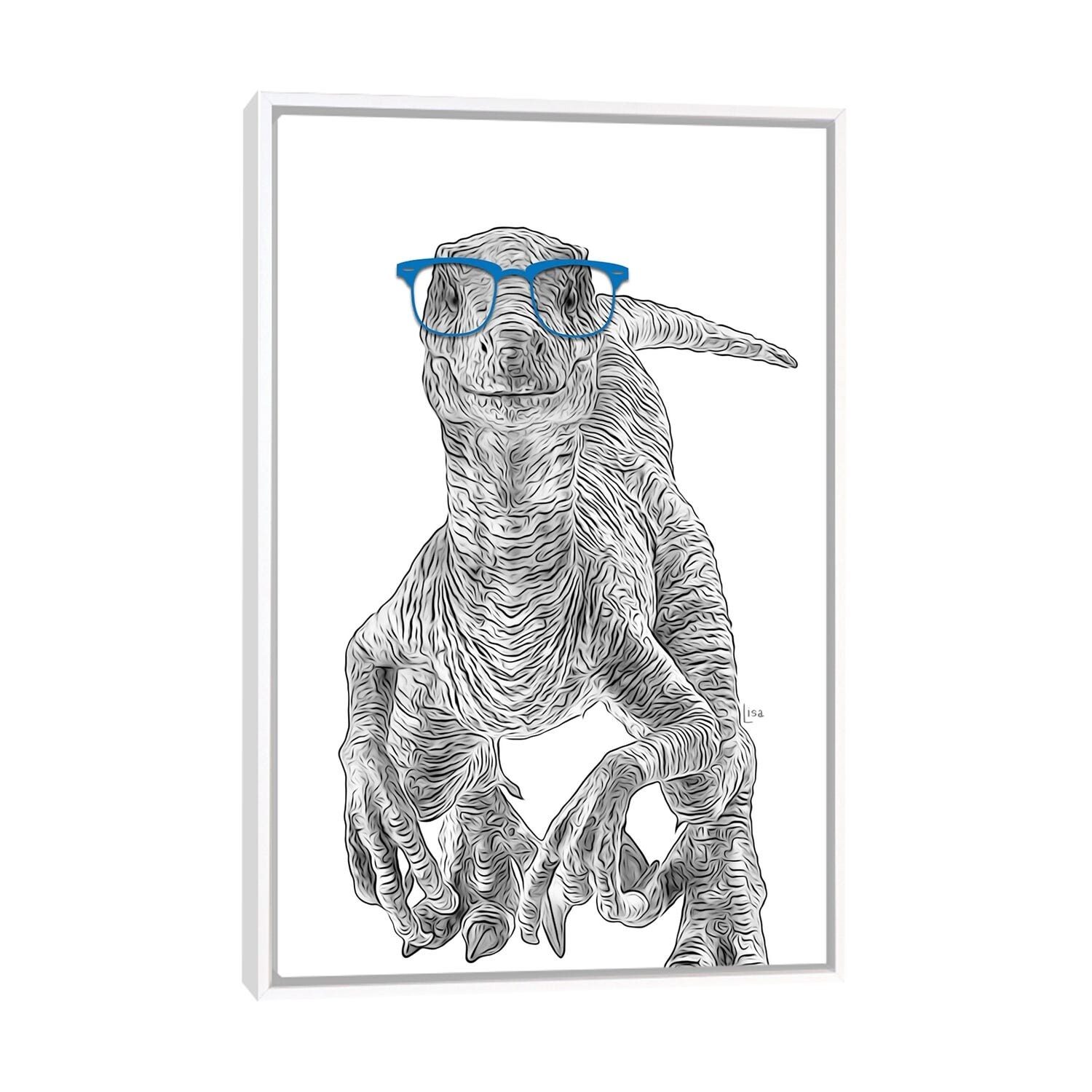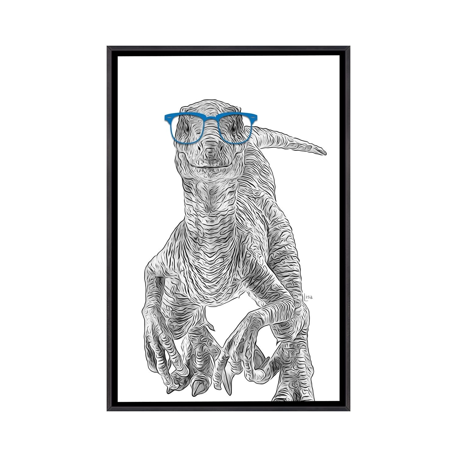 iCanvas "Velociraptor With Blue Glasses" by Printable Lisa's Pets Framed Canvas Print