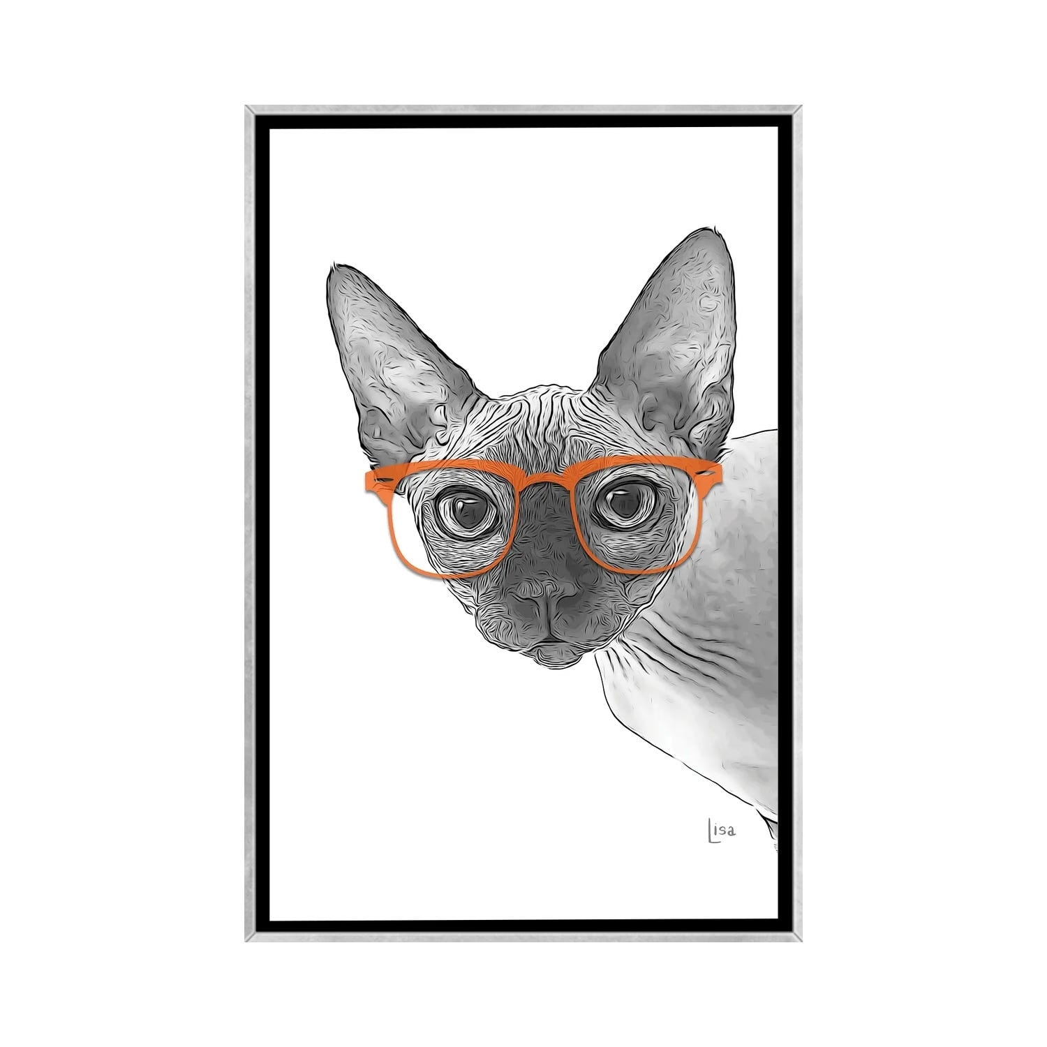 iCanvas "Sphynxcat With Orange Glasses" by Printable Lisa's Pets Framed