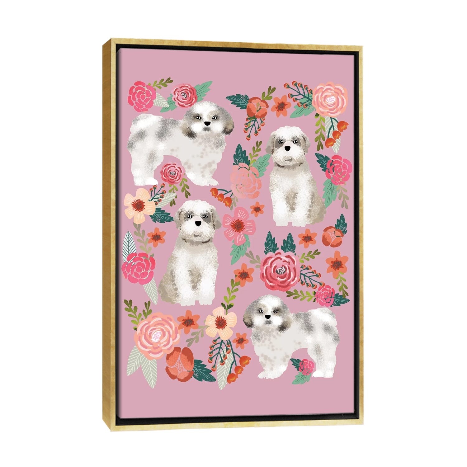 iCanvas "Shih Tzu Floral Collage" by Pet Friendly Framed Canvas Print