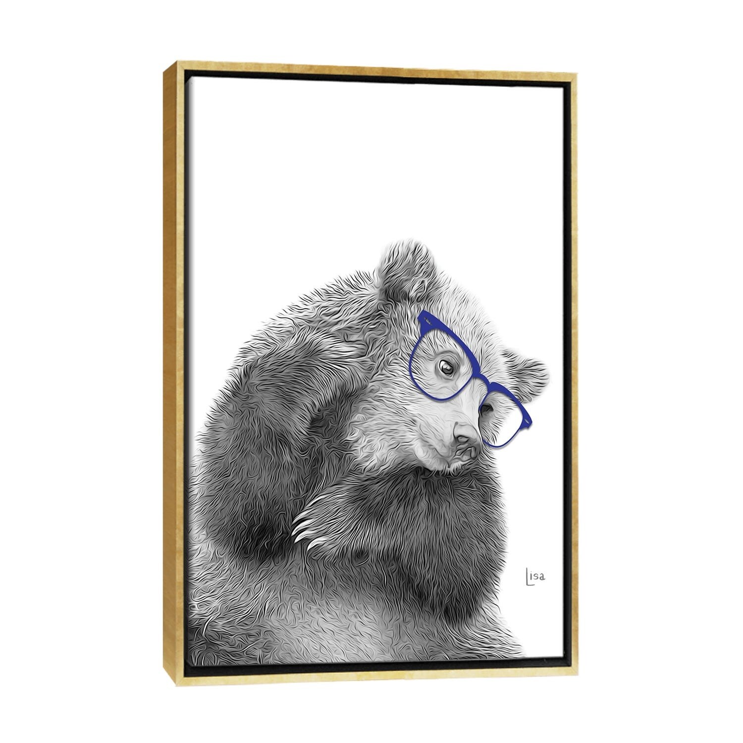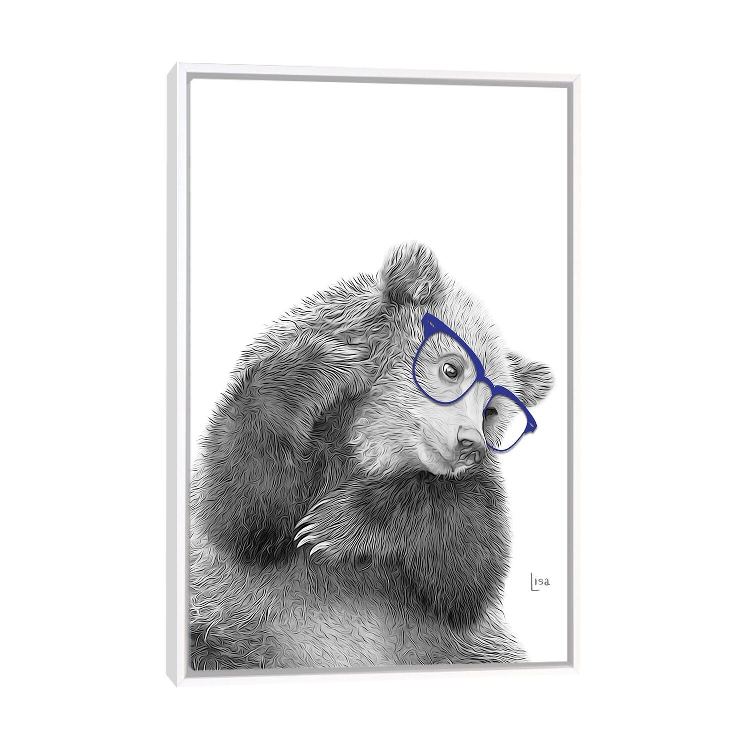 iCanvas "Tender Bear With Blue Glasses" by Printable Lisa's Pets Framed