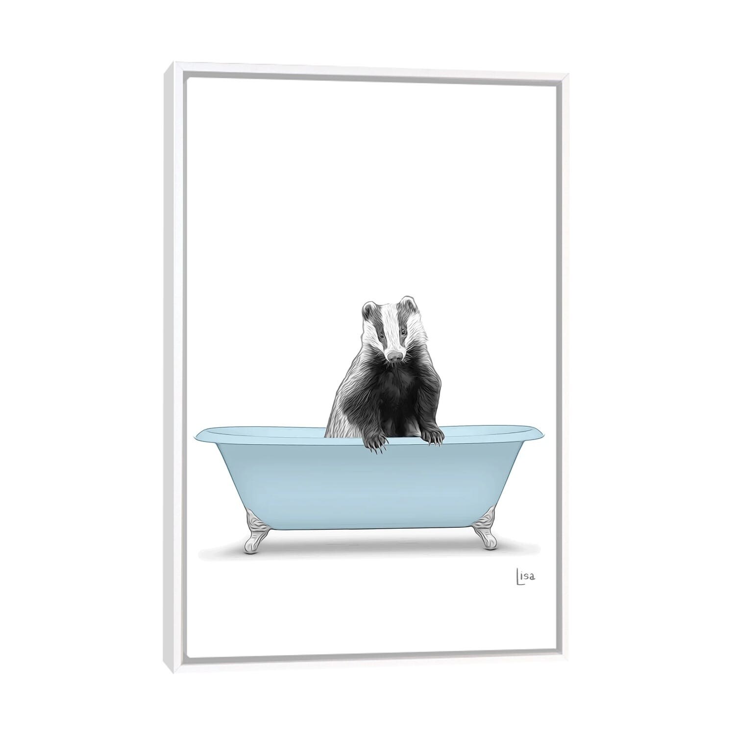 iCanvas "Badger In Blue Bathtub" by Printable Lisa's Pets Framed
