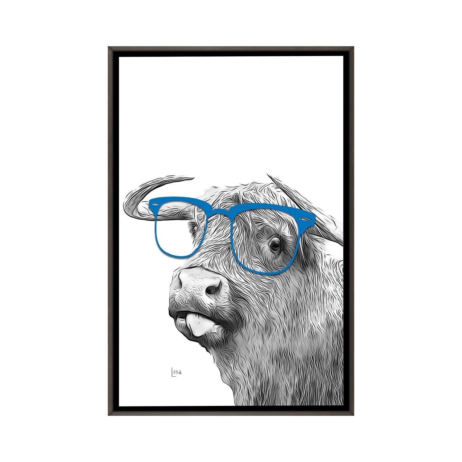 iCanvas "Funny Highland Cow With Blue Glasses" by Printable Lisa's Pets Framed