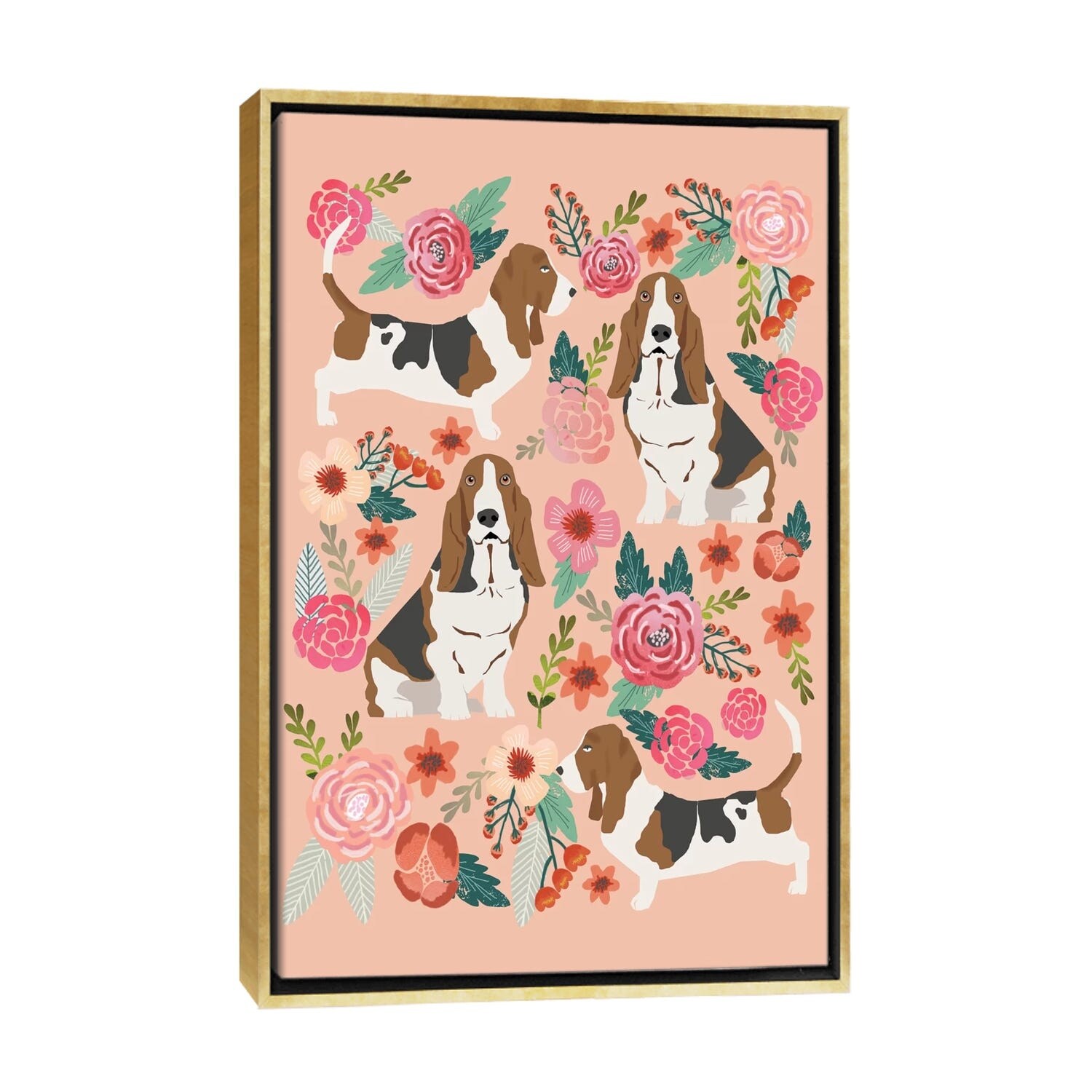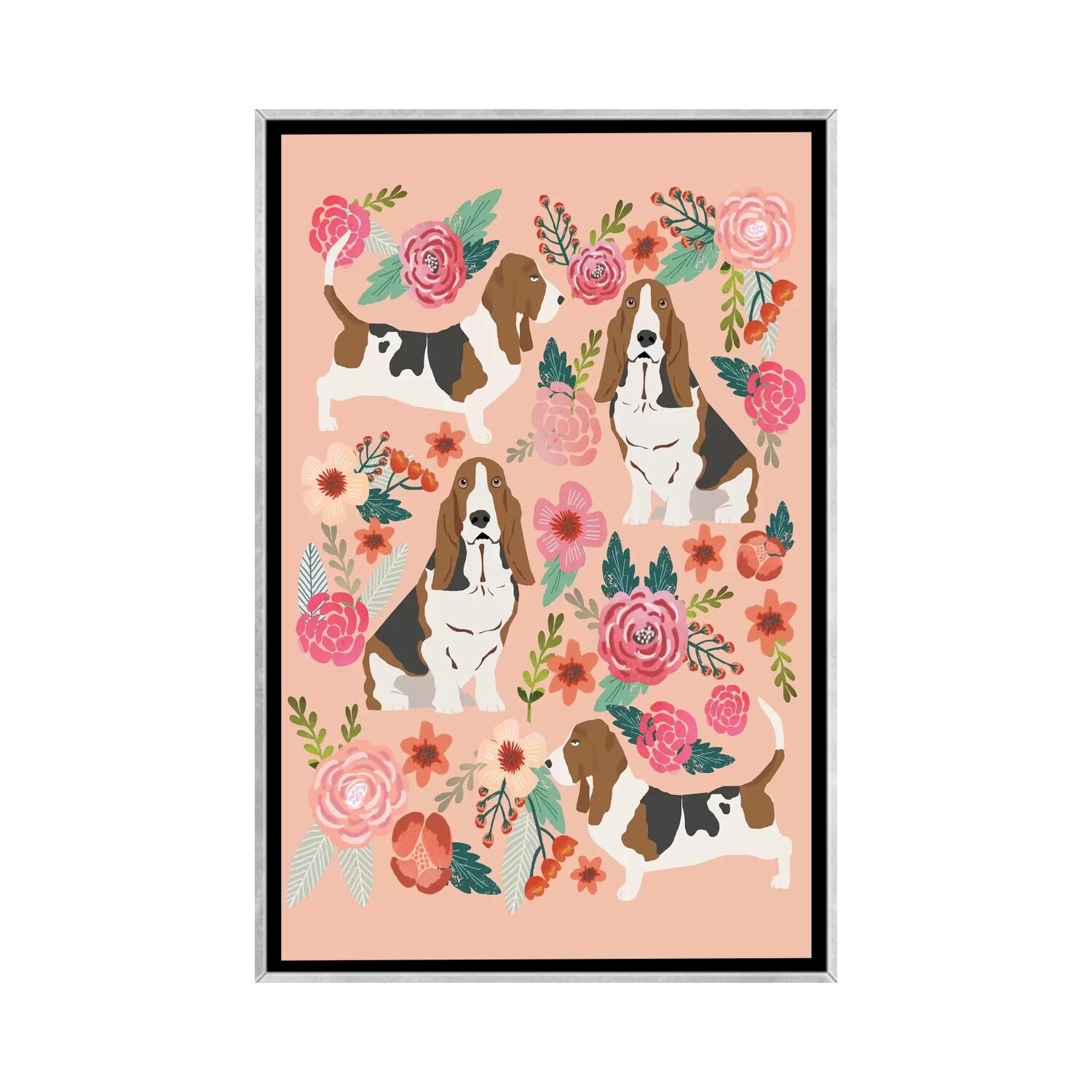 iCanvas "Basset Hound Floral Collage" by Pet Friendly Framed