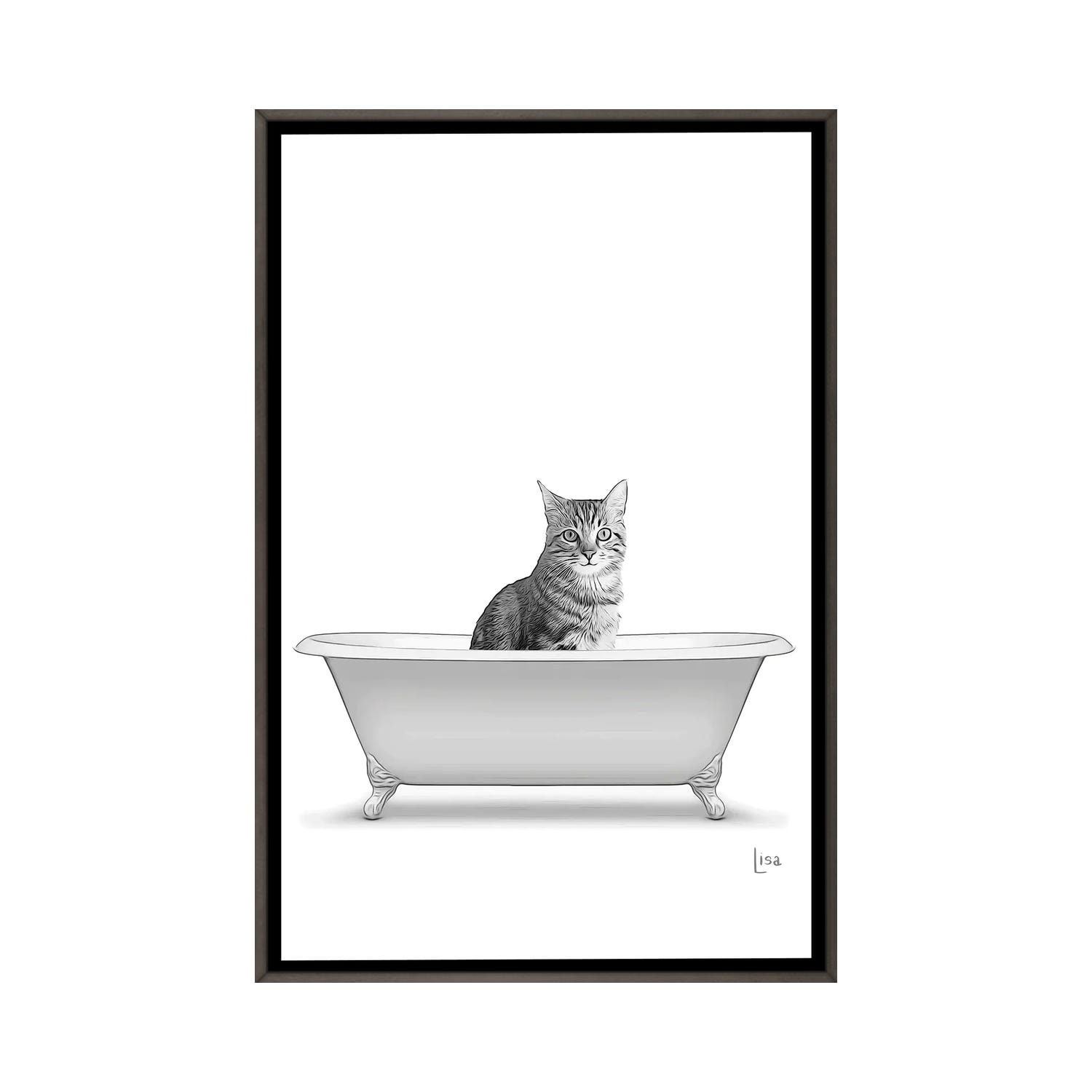 iCanvas "Cat In the Bathtub" by Printable Lisa's Pets Framed