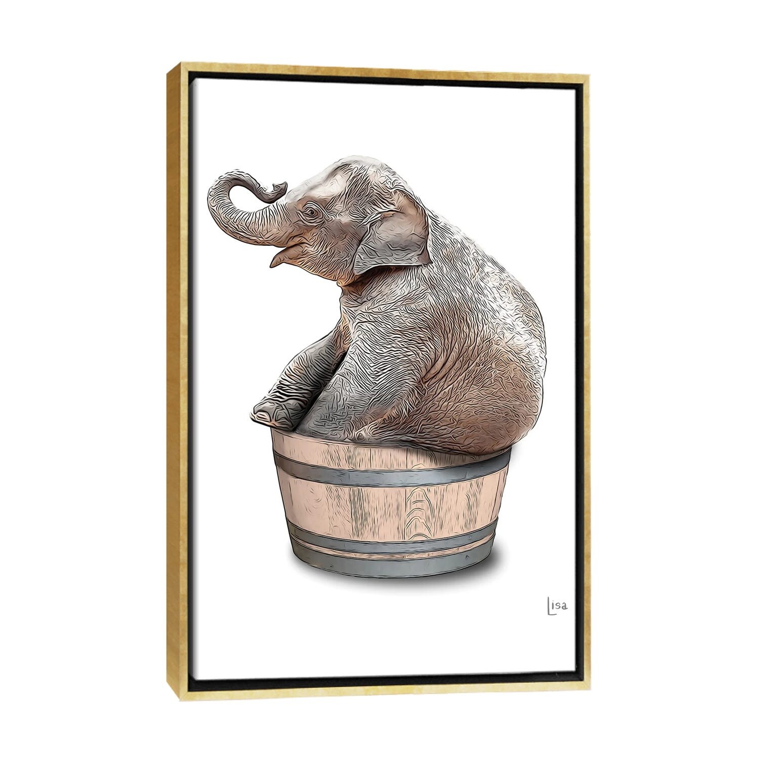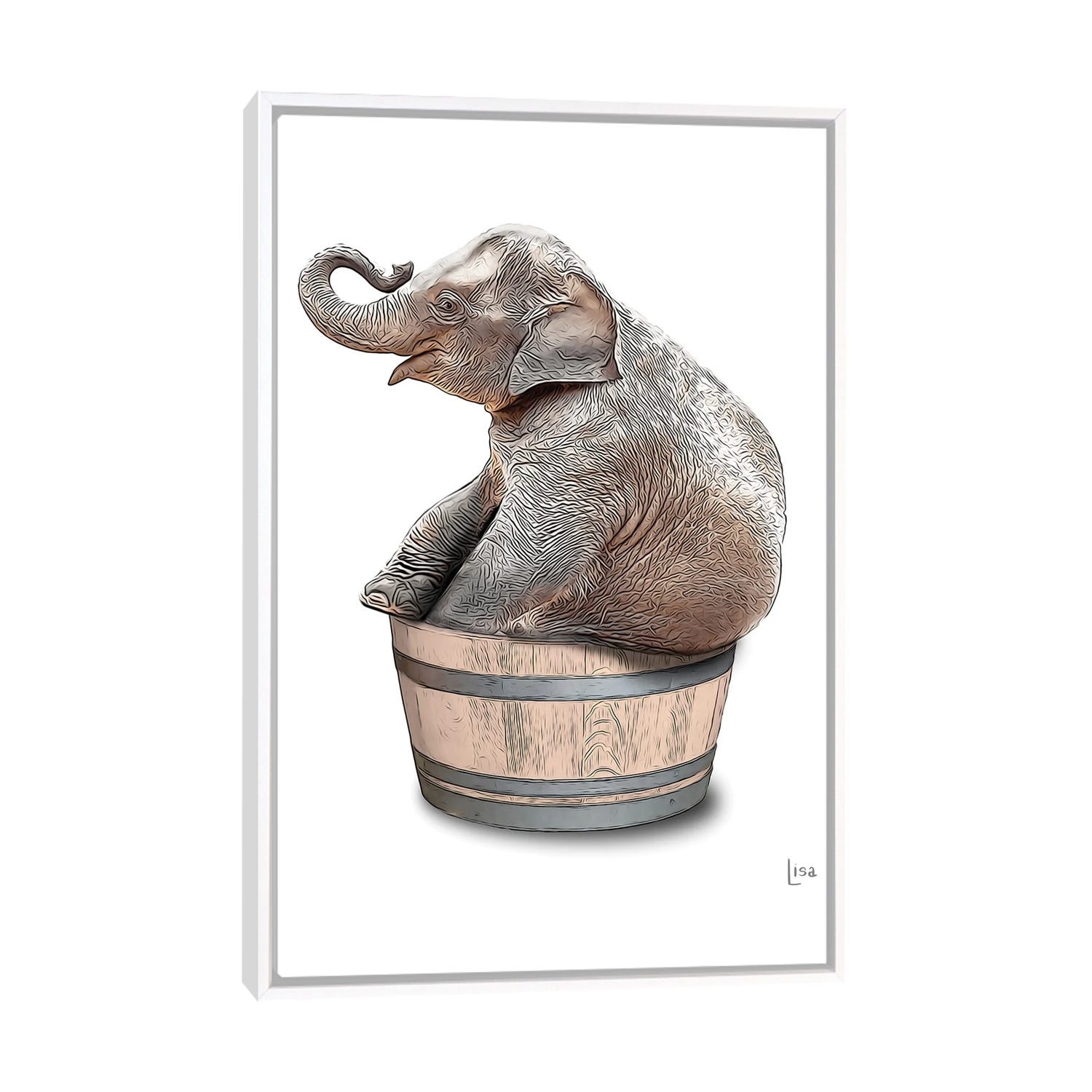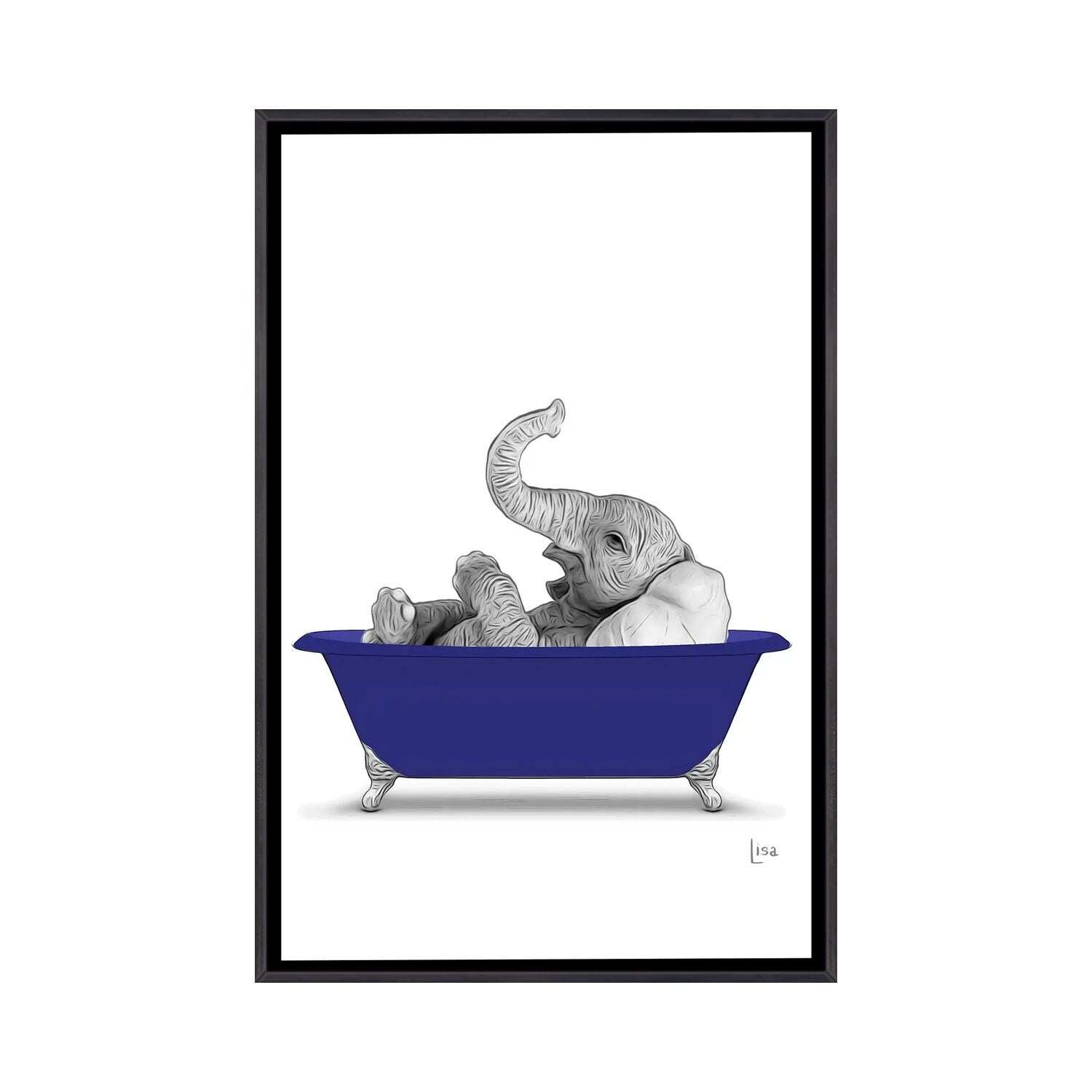iCanvas "Elephant In Bathtub" by Printable Lisa's Pets Framed