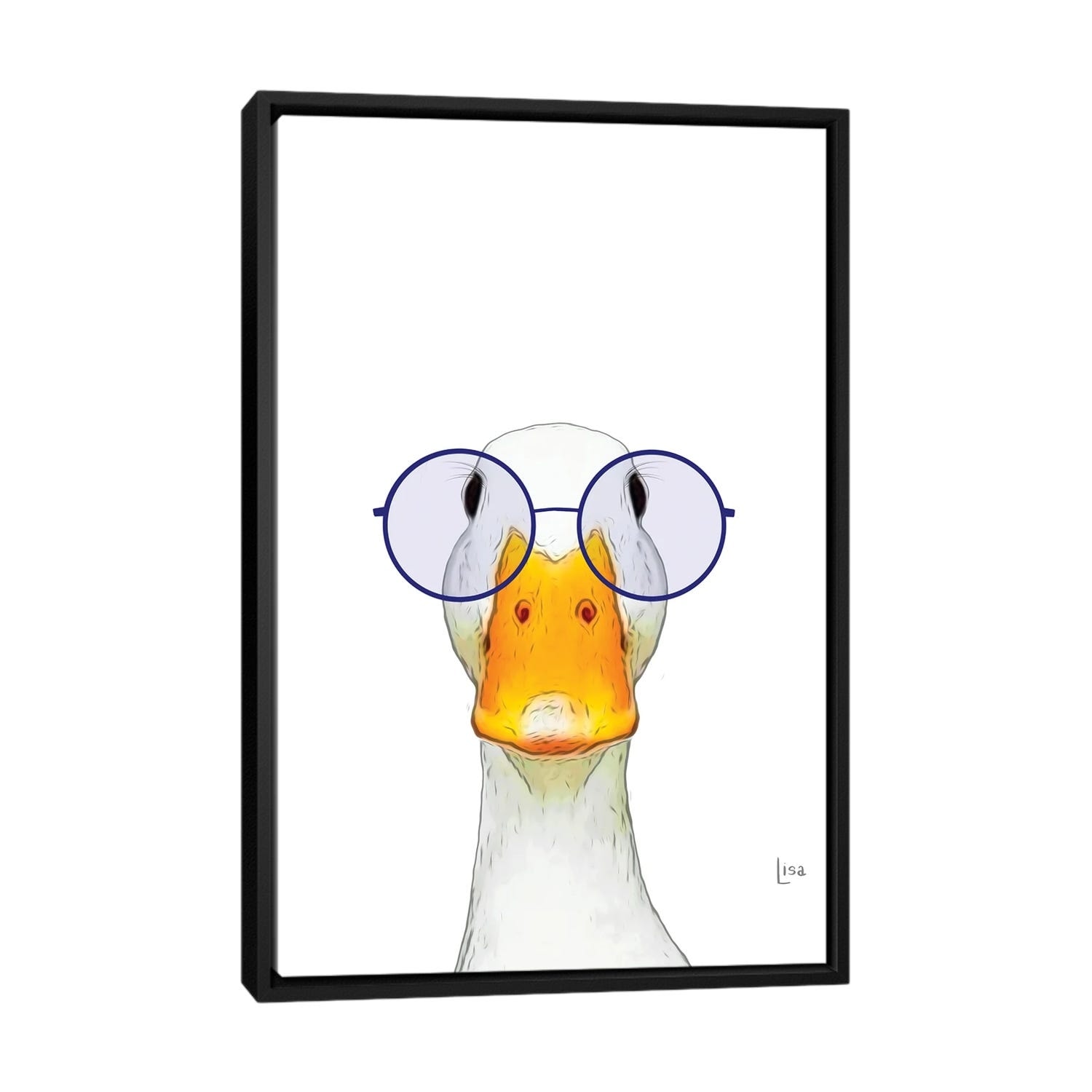 iCanvas "Color Duck With Navy Glasses" by Printable Lisa's Pets Framed Canvas Print