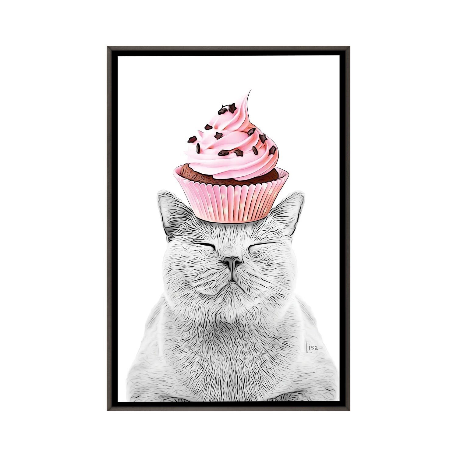 iCanvas "Cat With Cupcake" by Printable Lisa's Pets Framed