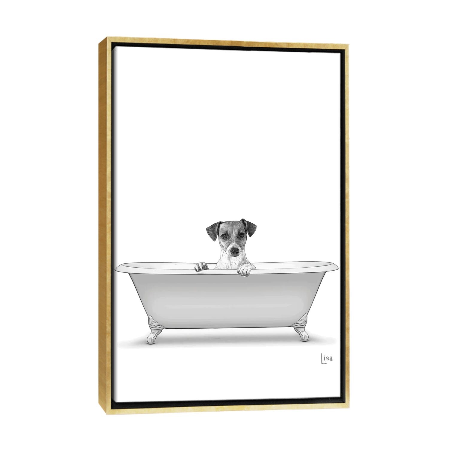 iCanvas "Dog In the Bath Bw" by Printable Lisa's Pets Framed Canvas Print