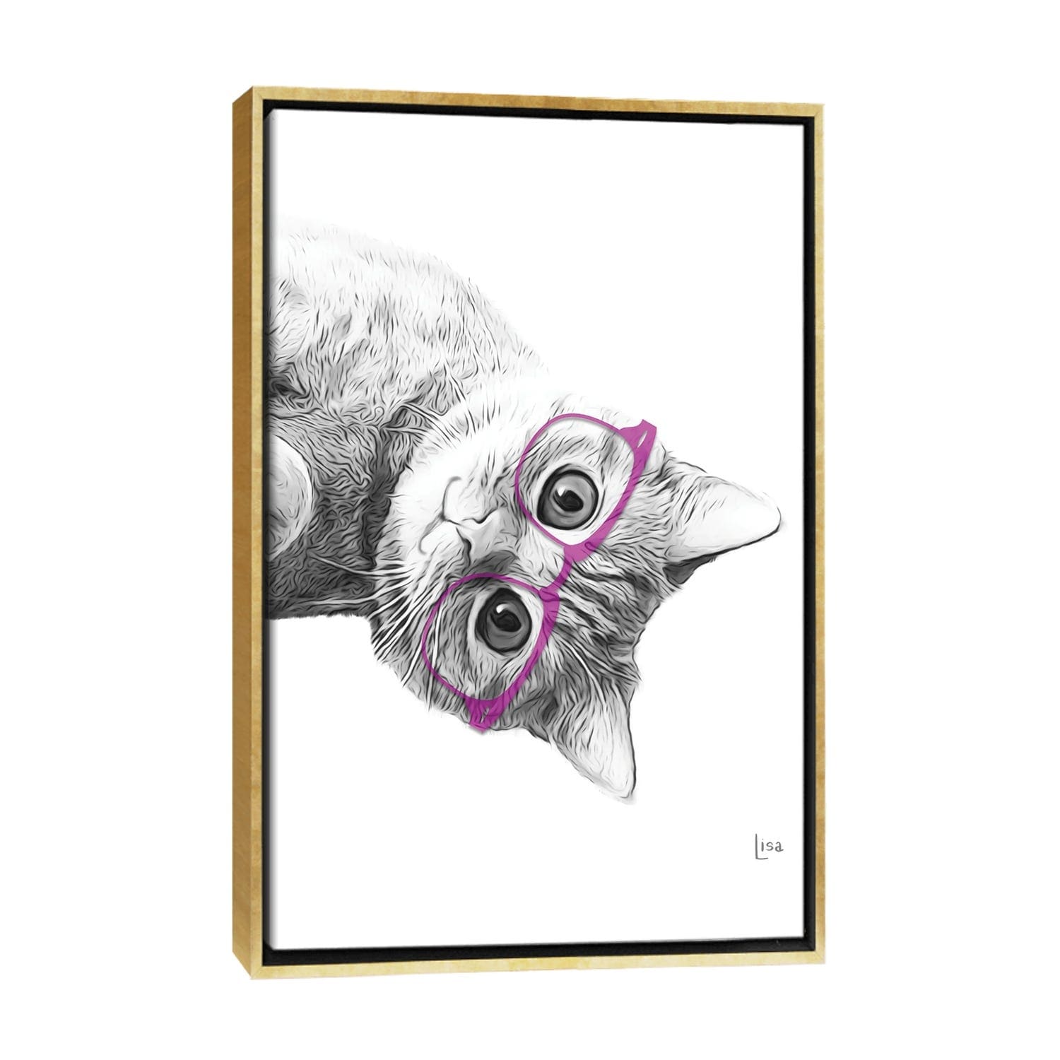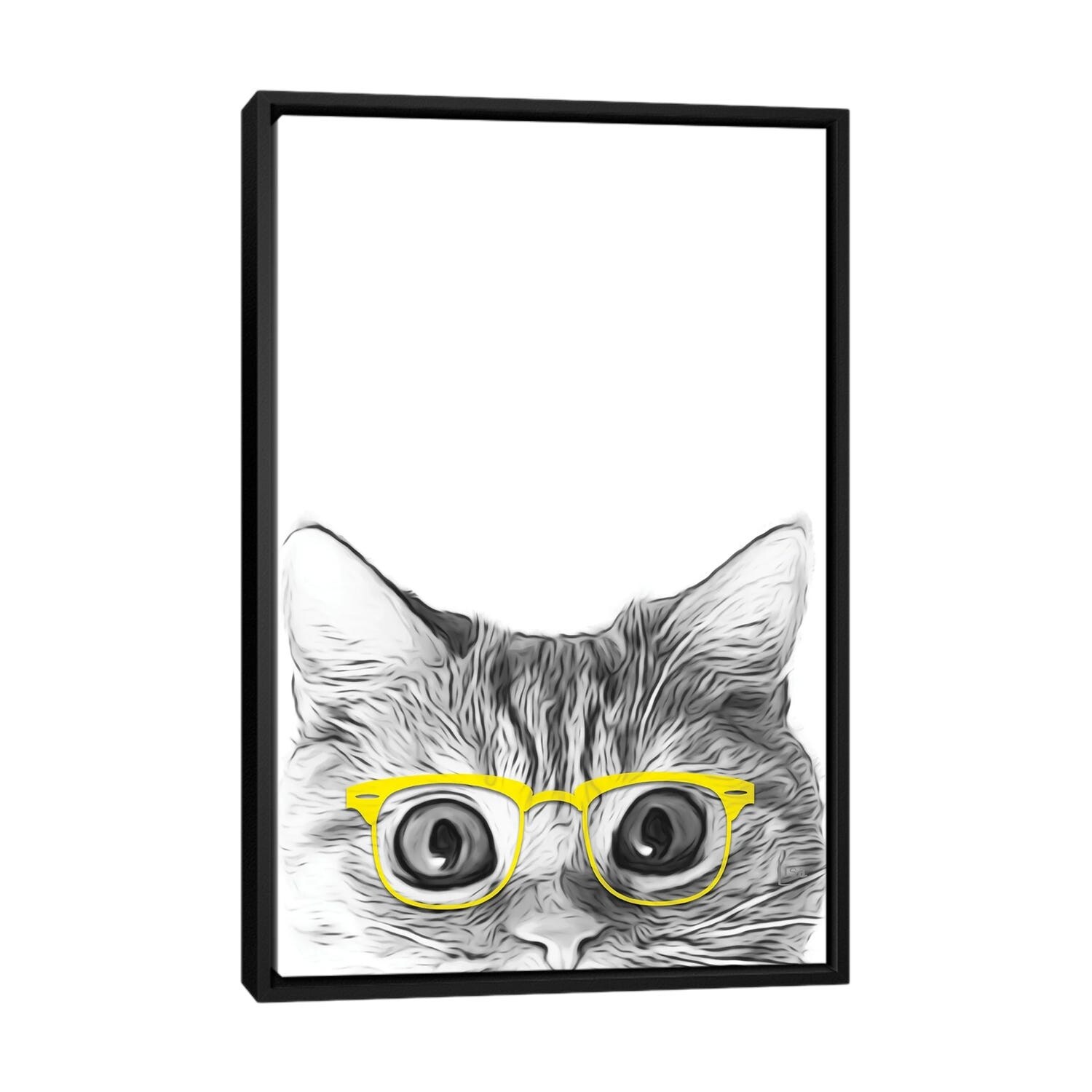 iCanvas "Cat With Yellow Glasses" by Printable Lisa's Pets Framed Canvas Print
