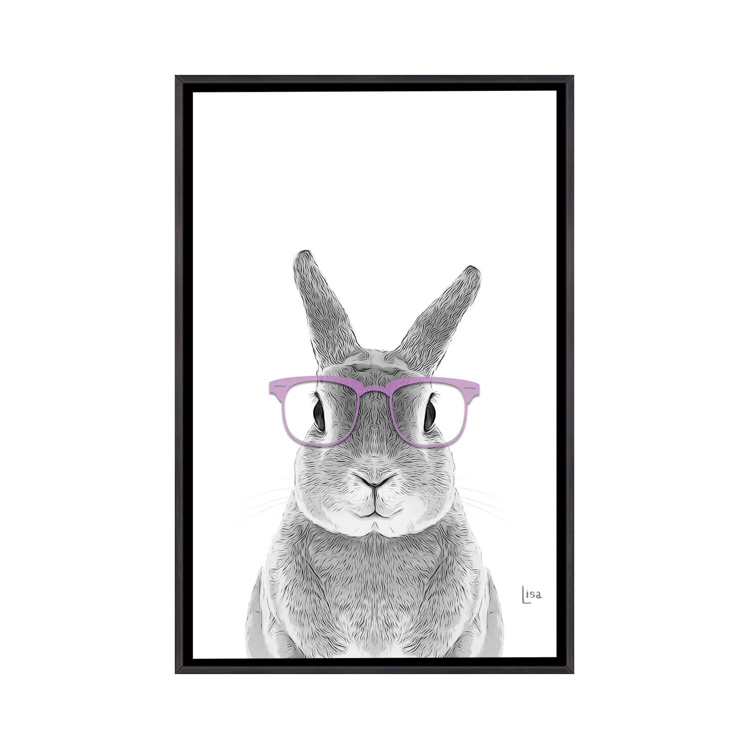 iCanvas "Bunny With Lavander Glasses" by Printable Lisa's Pets Framed