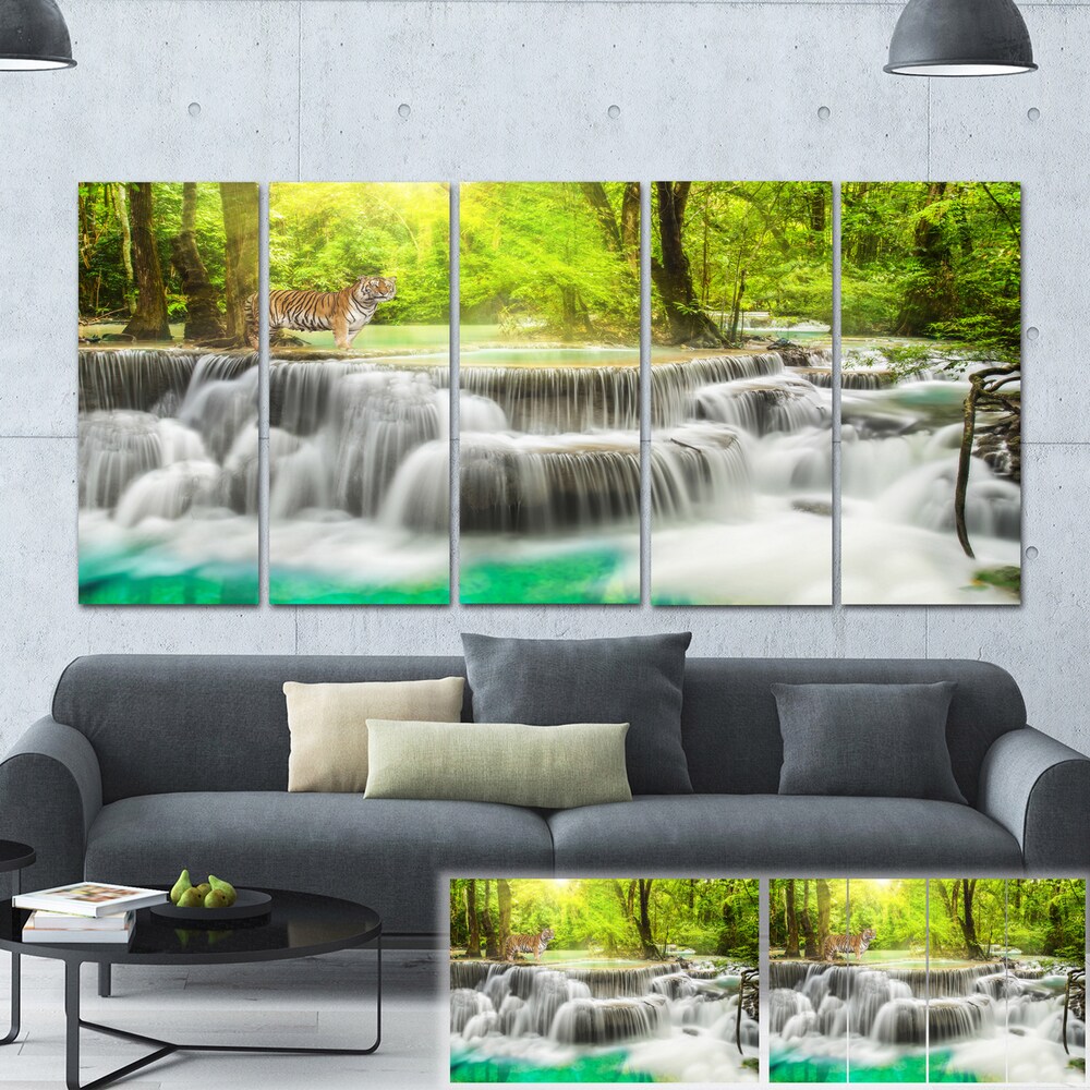 Designart "Erawan Waterfall in Kanchanaburi" Photography Canvas Print - Green