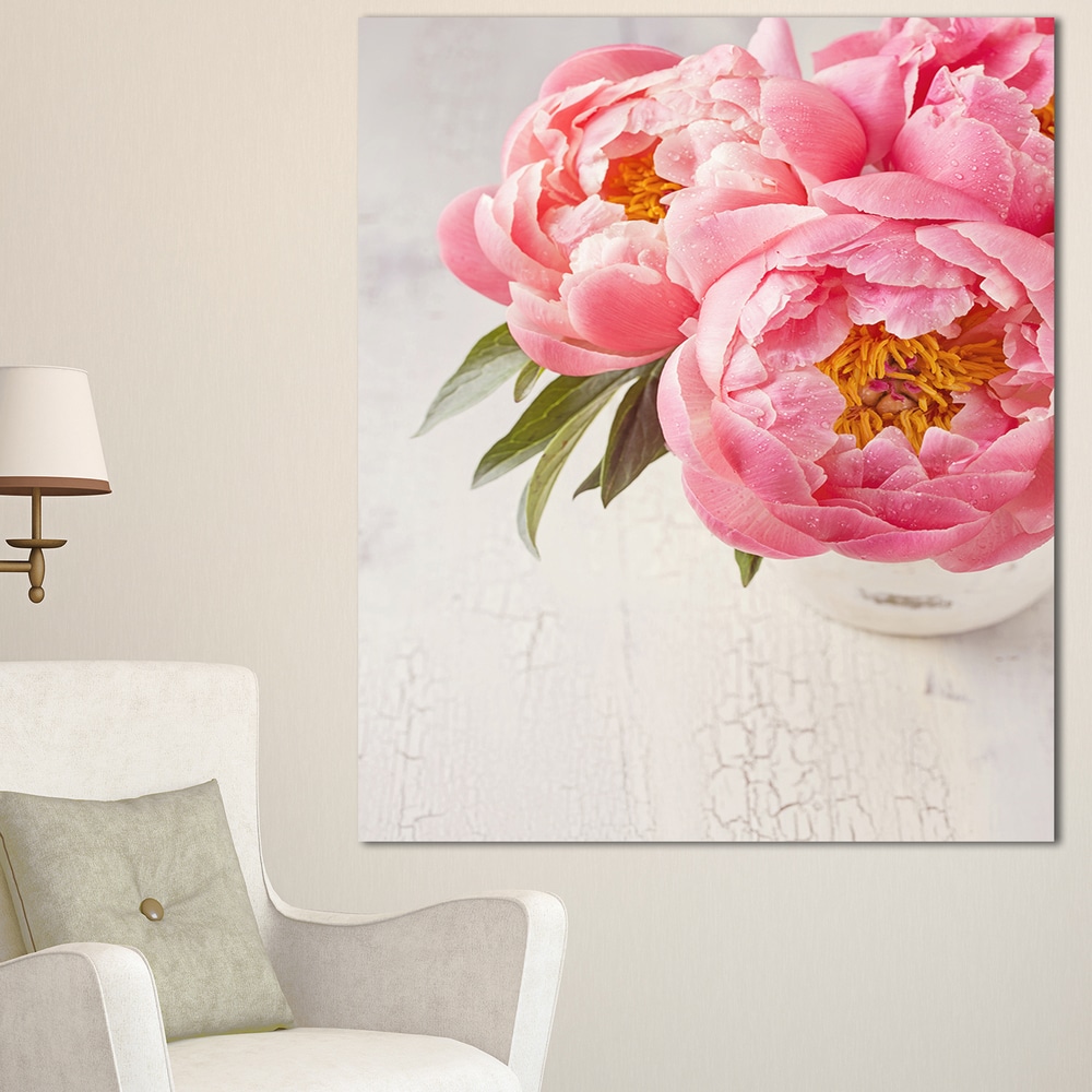 Designart "Peony Flowers in Vase Photography" Floral Canvas Artwork Print - Pink