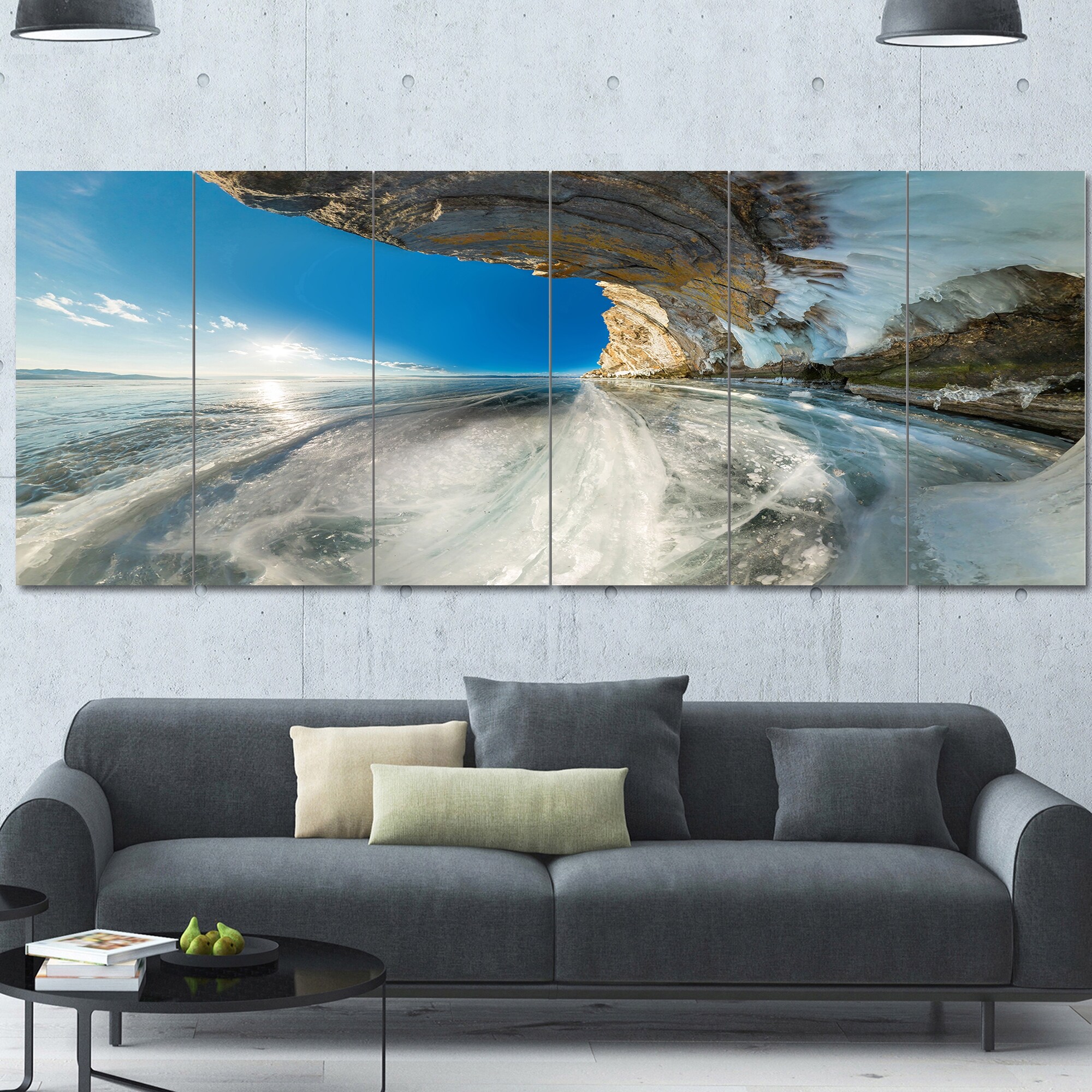 Designart "Ice grotto in rock on Olkhon Island" Landscapes photography on Wrapped Canvas set