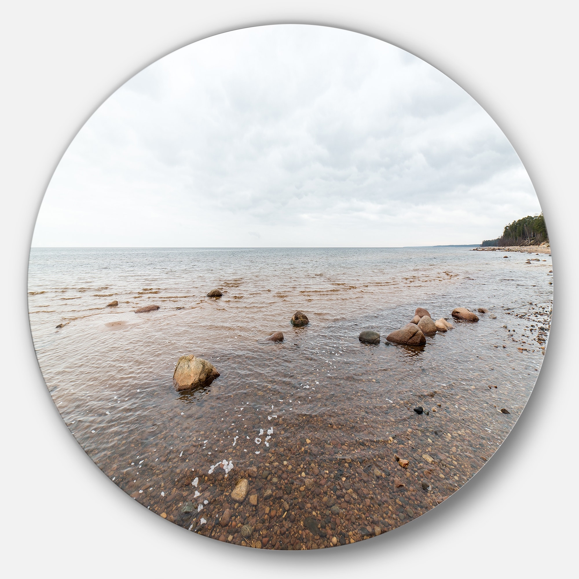 Designart 'Rocky Autumn Beach' Seashore Photography Round Wall Art