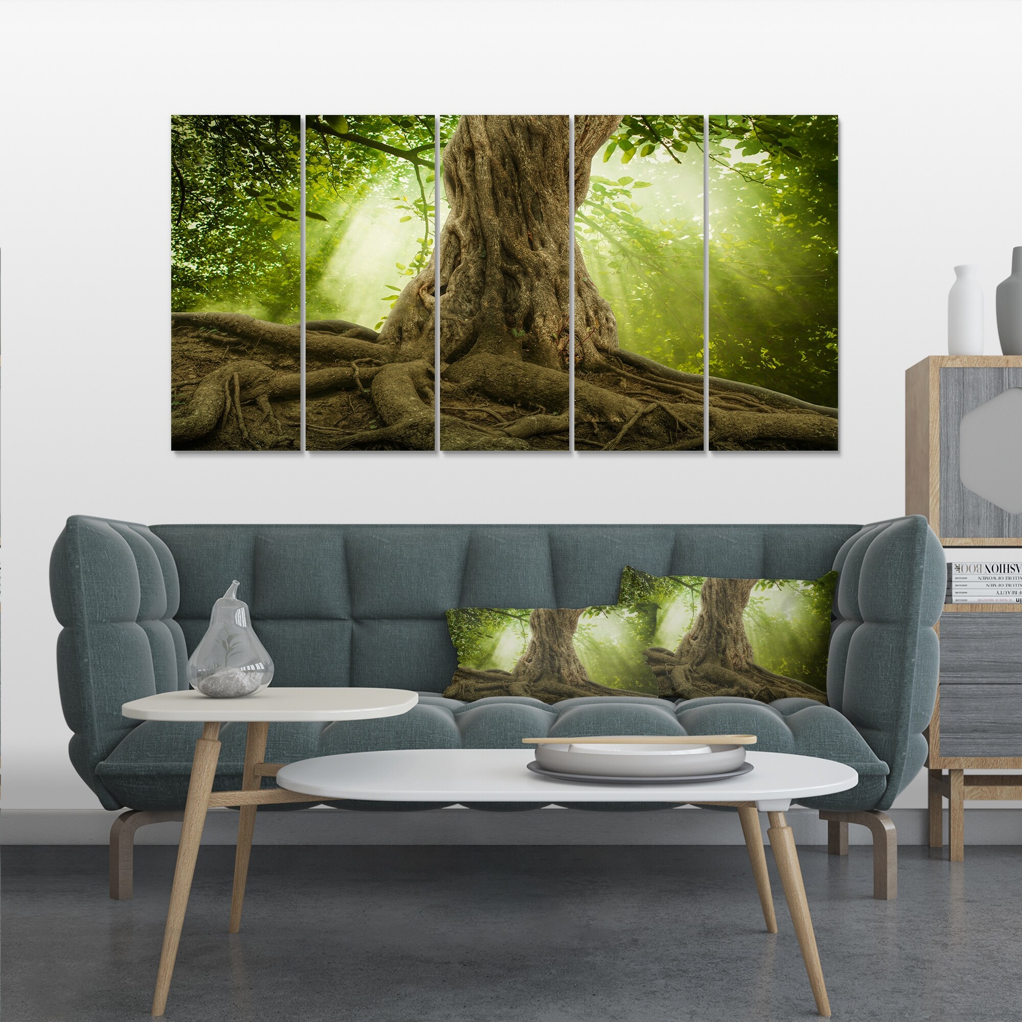 Designart "Sunbeam in a green forest" Forest Tropical Photography on Wrapped Canvas set