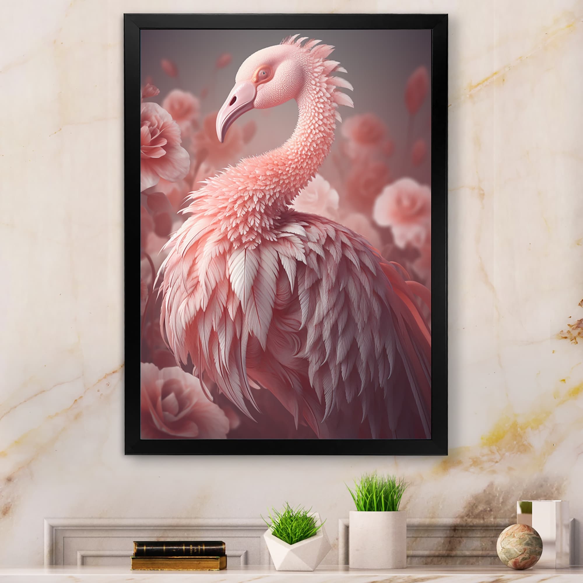 Designart "Pink Flamino Photography Iv" Animals Flamingo Framed Wall Decor