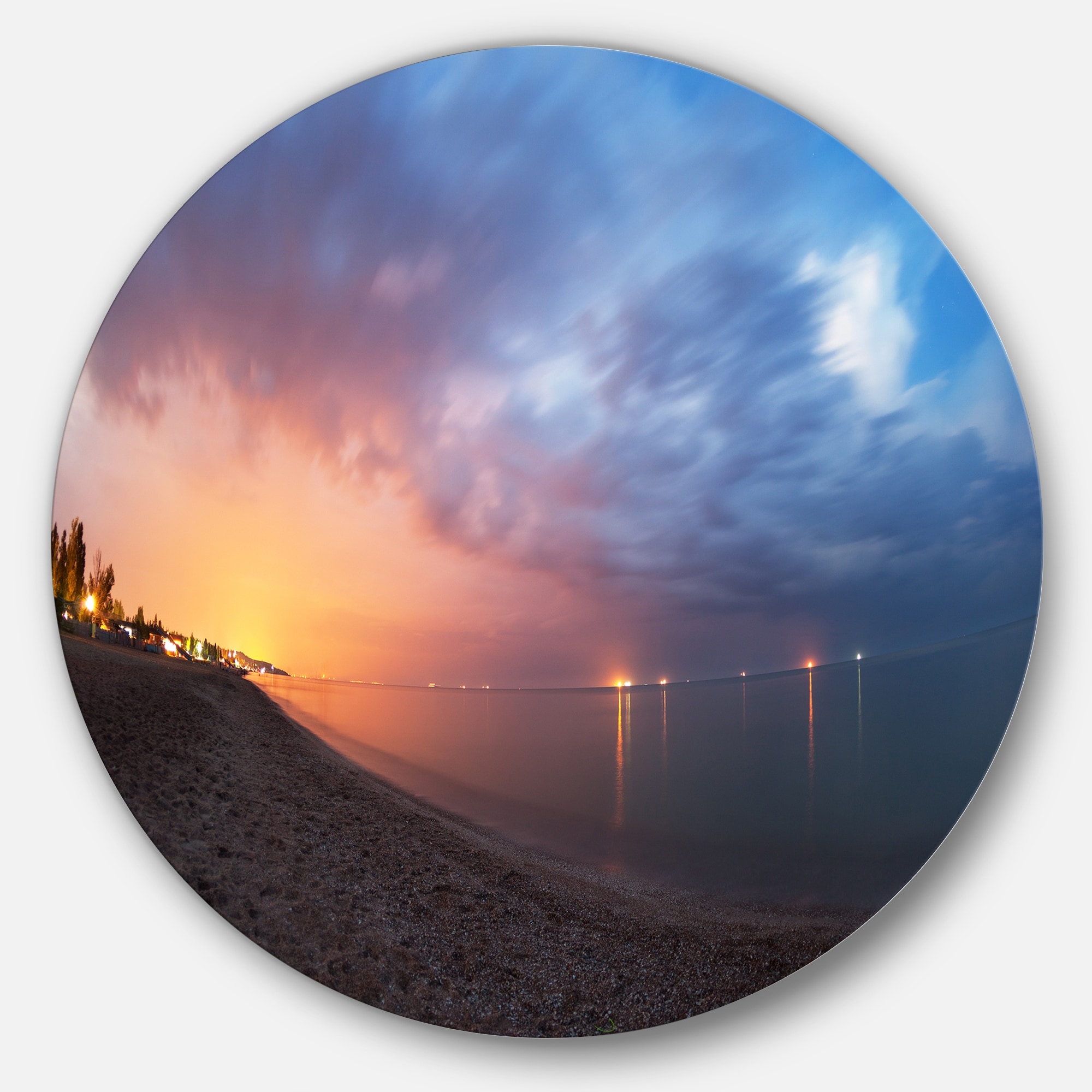Designart 'Summer Night with Blue Sky' Skyline Photography Circle Wall Art