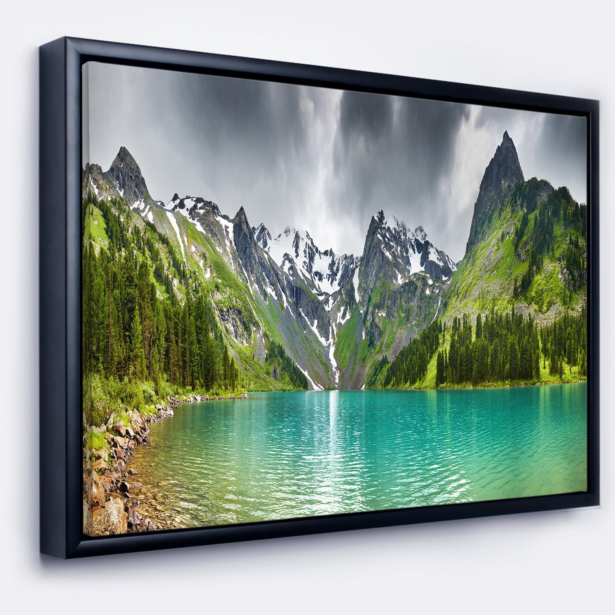 Designart "Mountain Lake Panorama" Photography Framed Canvas Art Print
