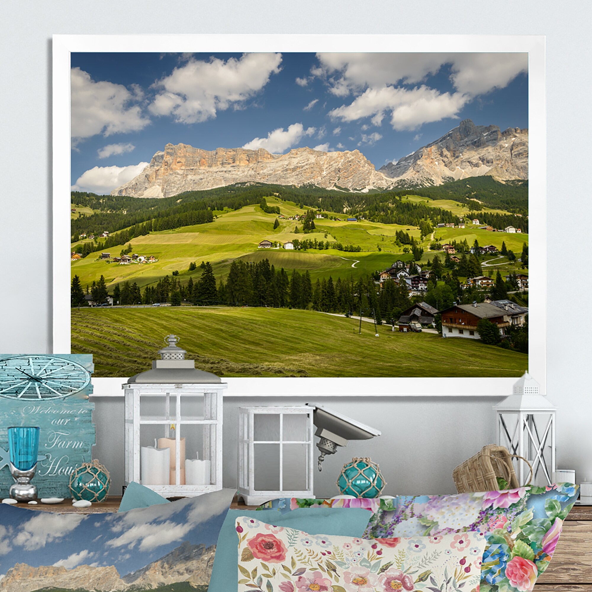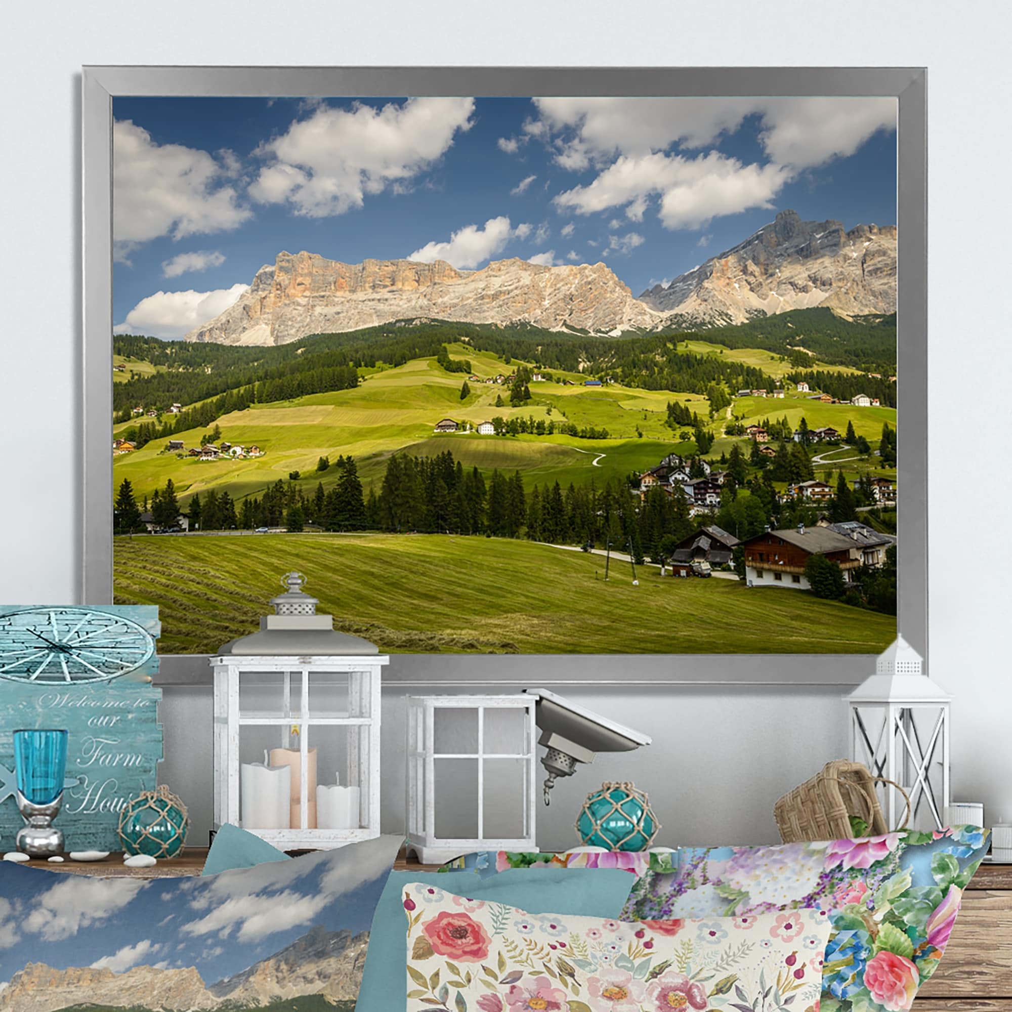 Designart "Beautfiul Panoramic Mountain Photography" Cabin & Lodge Framed Wall Decor