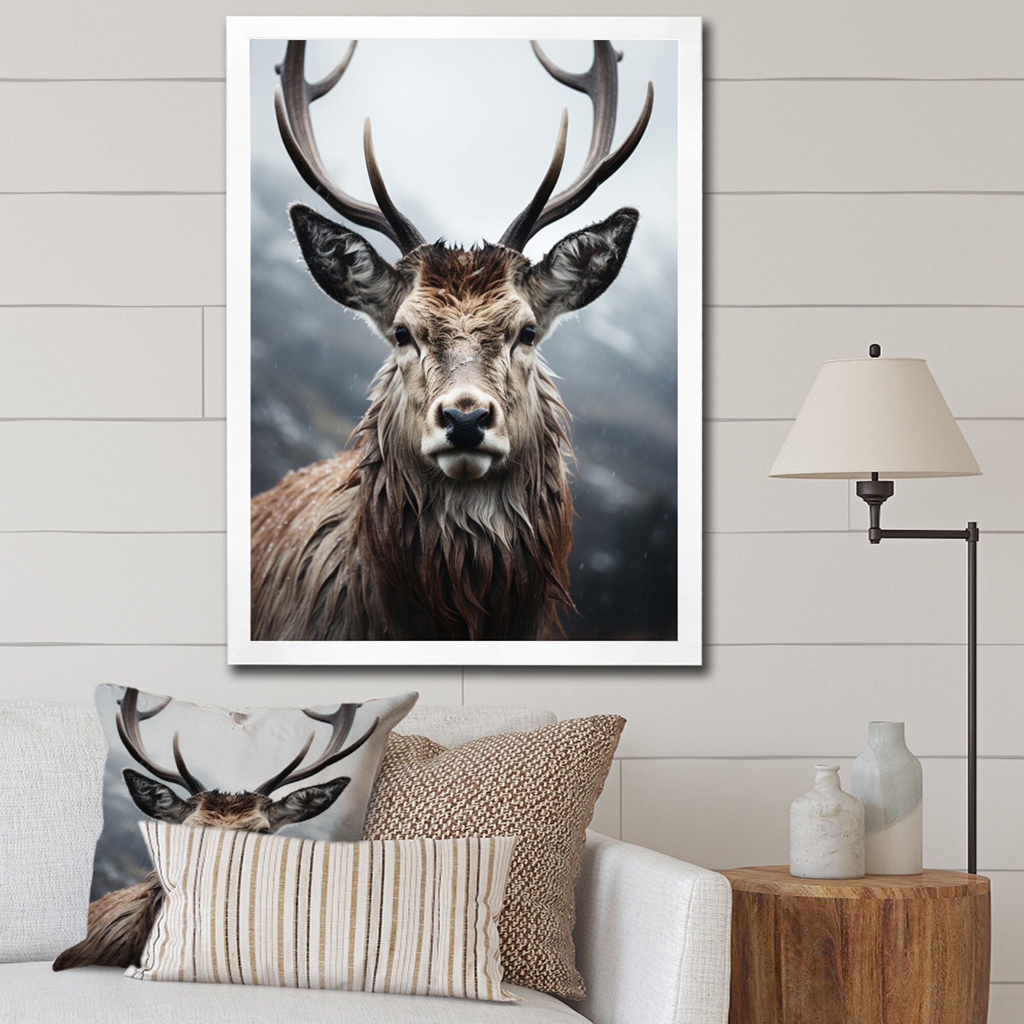 Designart "Deer Monochrome Photography I" Animals Deer Framed Canvas Prints