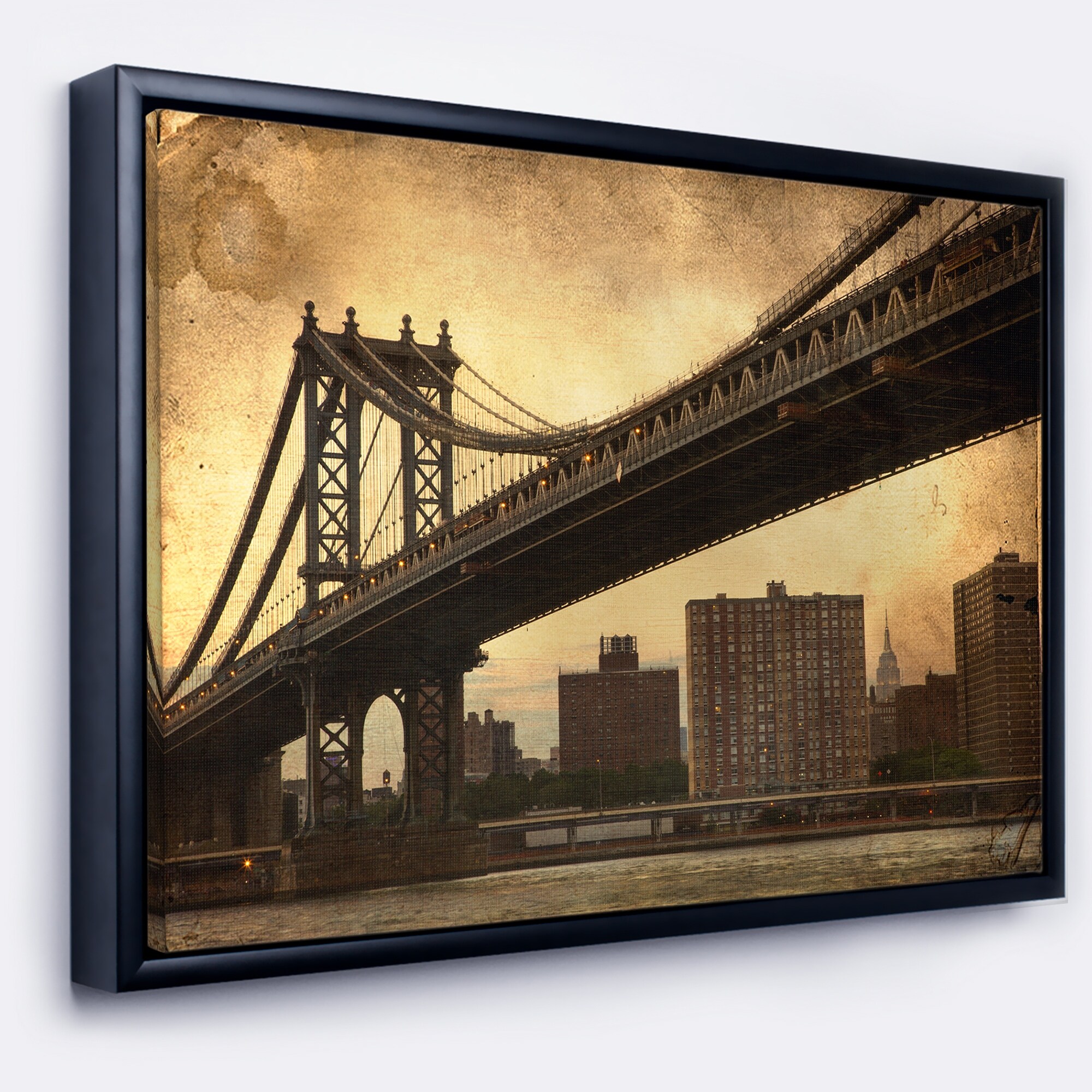 Designart "Dark Manhattan Bridge" Photography Framed Canvas Art Print