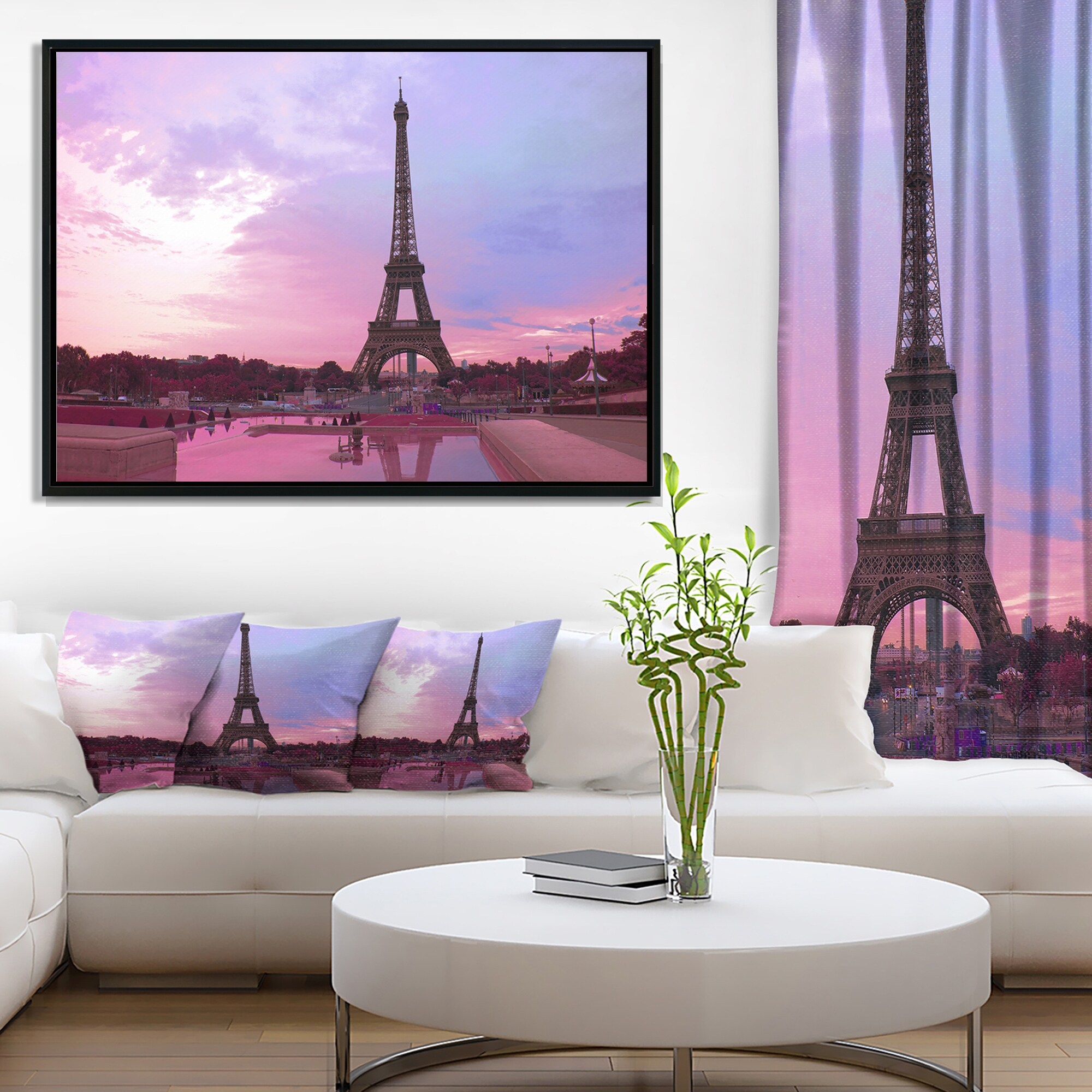 Designart "Paris Eiffel Towerin Purple Tone" Landscape Photography Framed Canvas Print