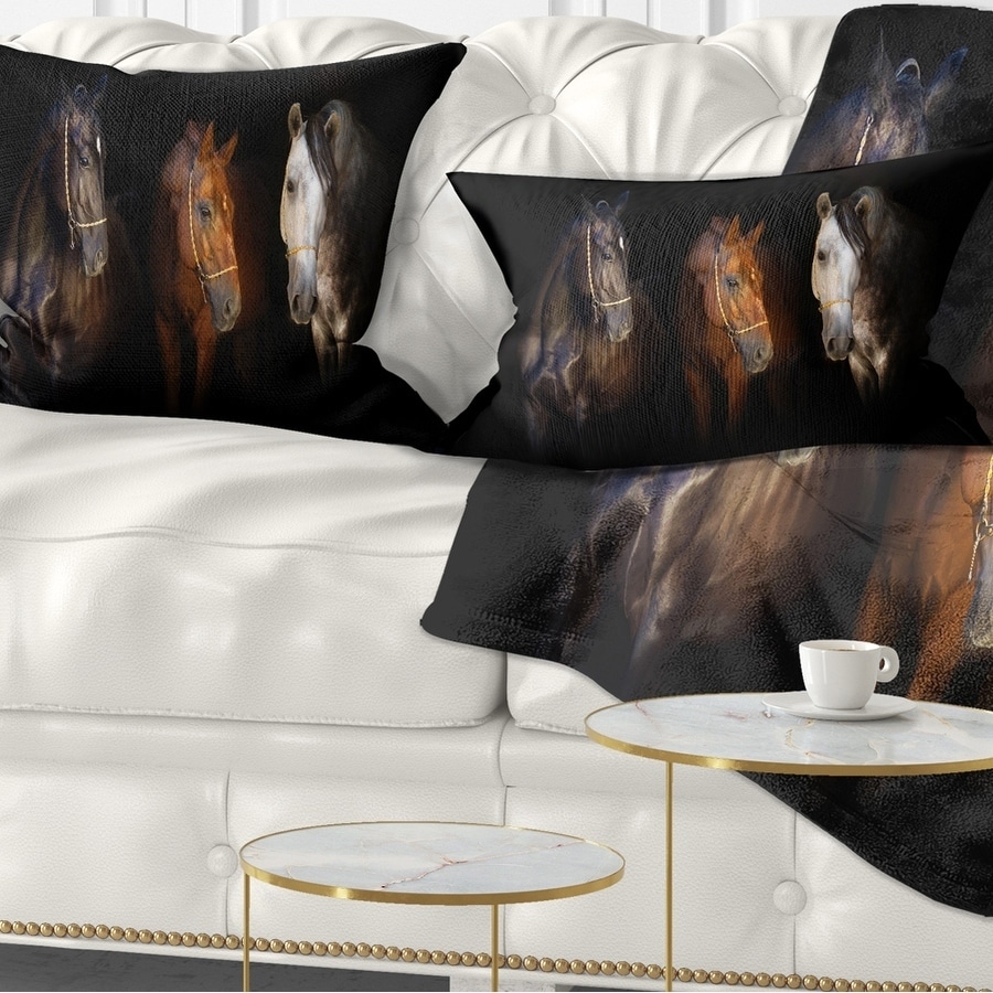 Designart 'Three Horses with Golden Bridle' Animal Throw Pillow