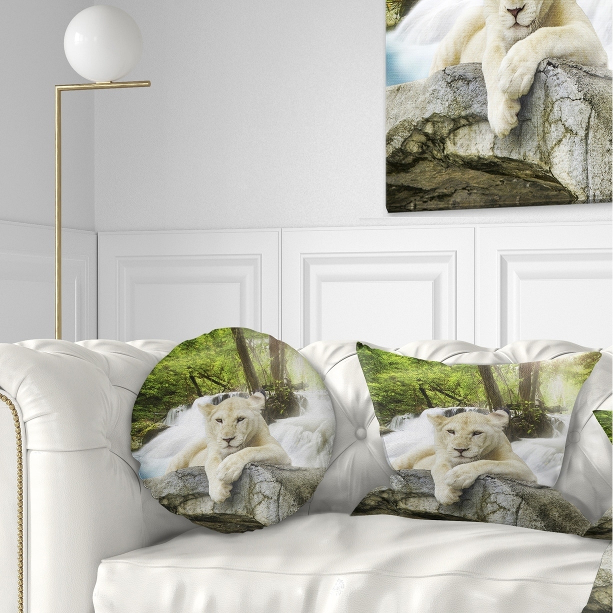 Designart 'White Lion' Animal Throw Pillow