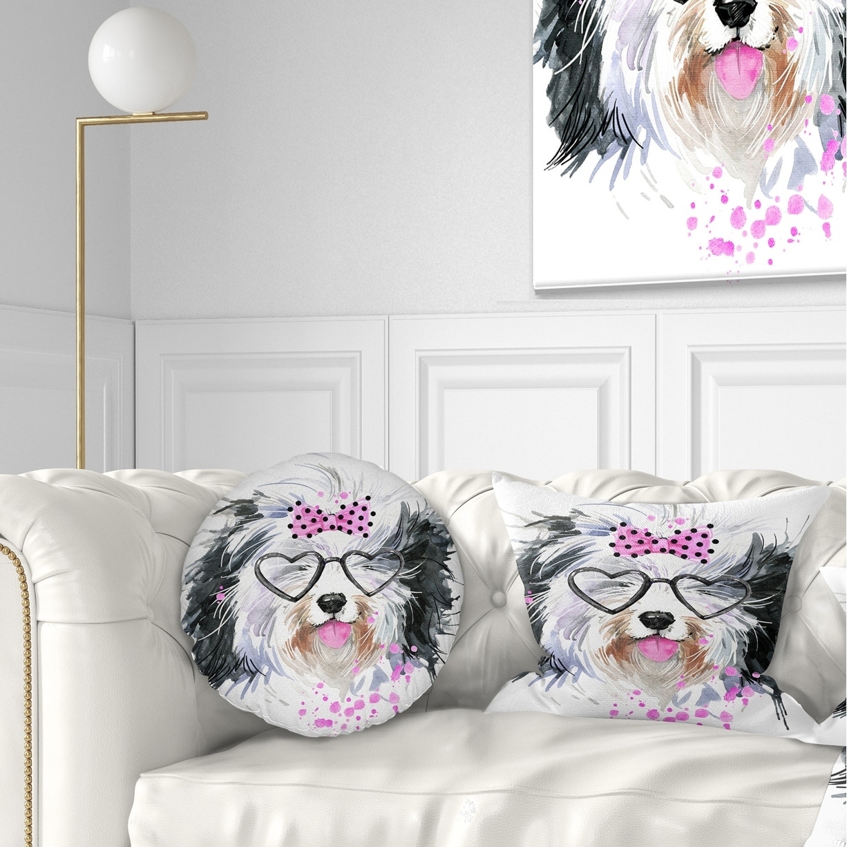 Designart 'Lovely Dog with Pink Heart Glasses' Contemporary Animal Throw Pillow