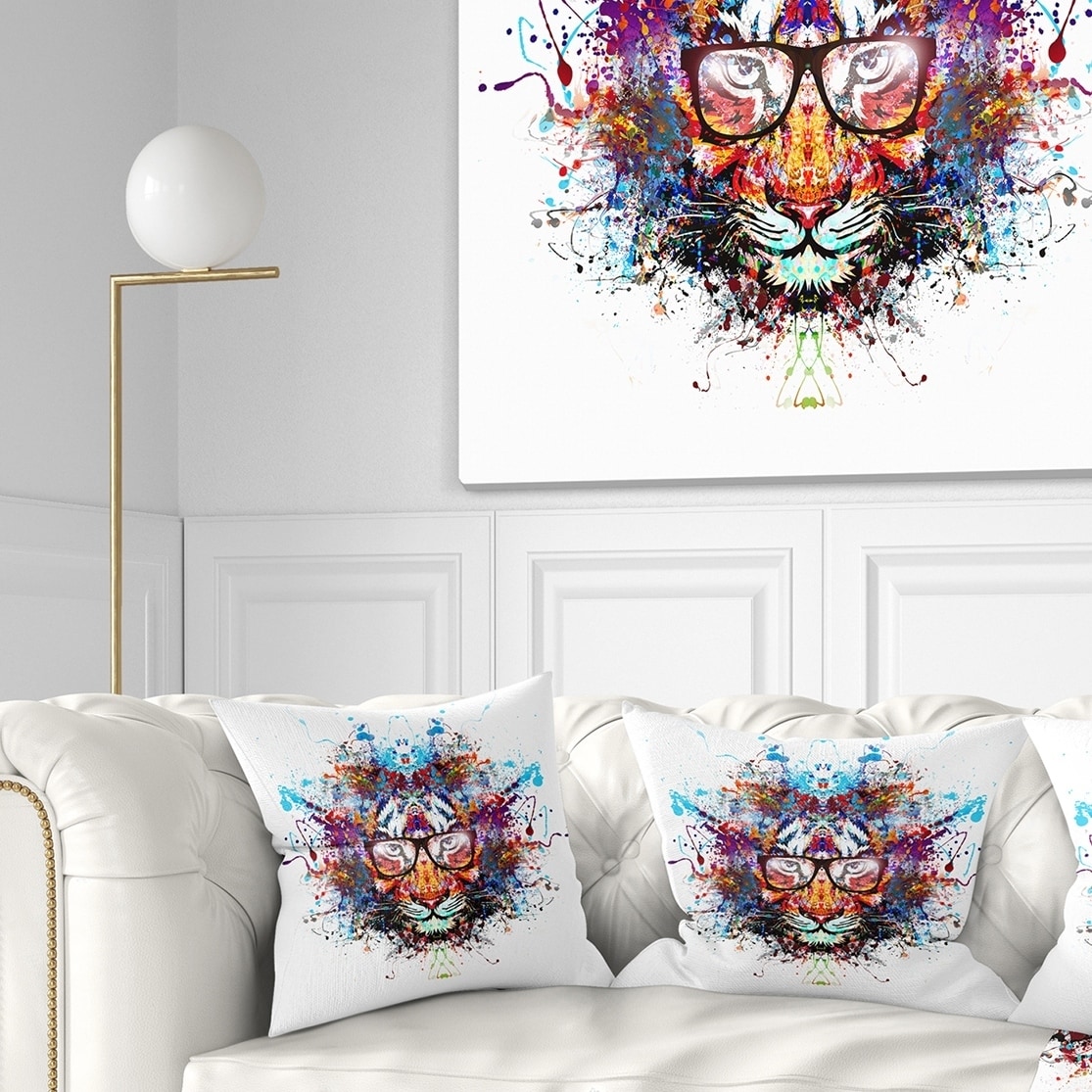 Designart 'Colorful Tiger in Glasses' Animal Throw Pillow