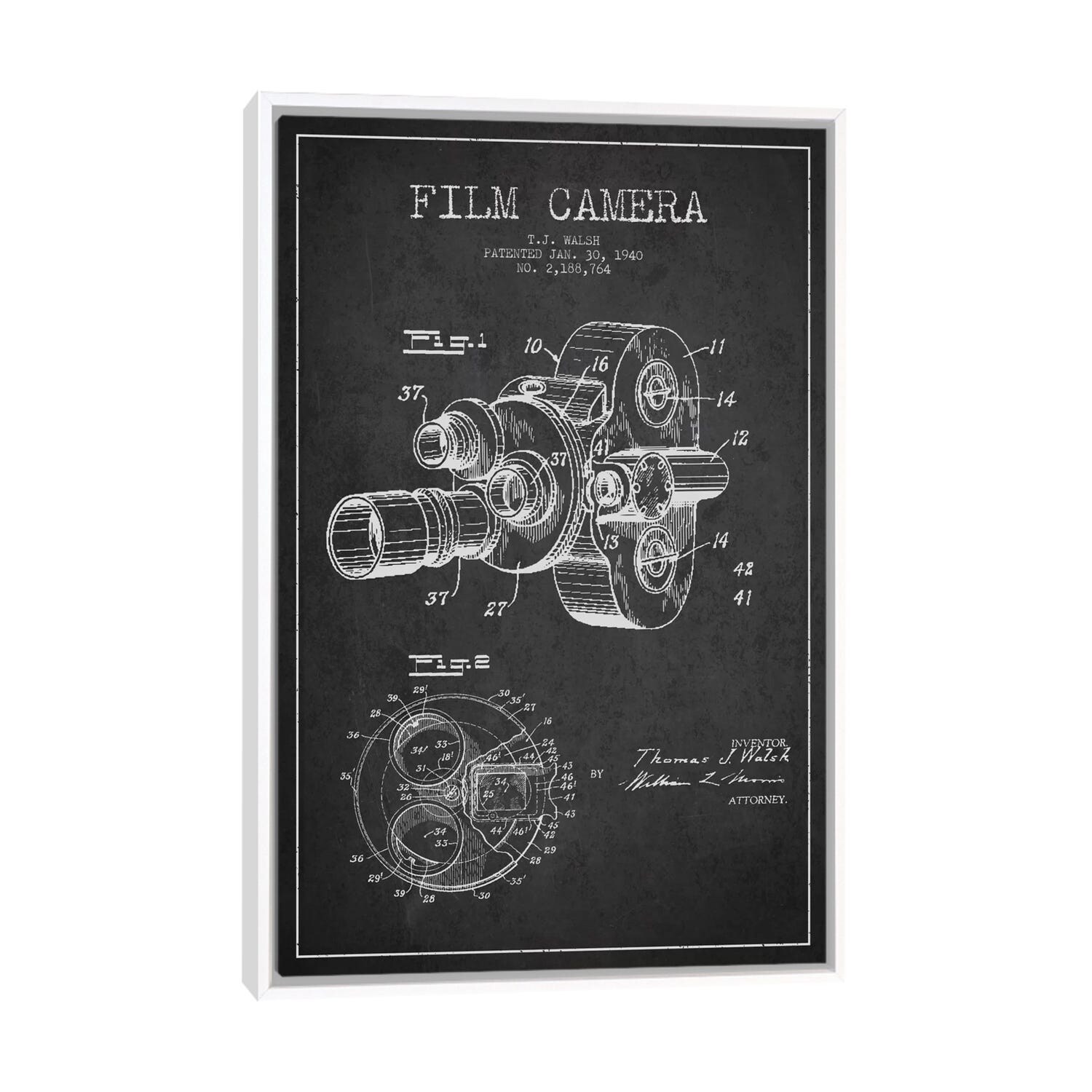 iCanvas "Camera Charcoal Patent Blueprint" by Aged Pixel Framed
